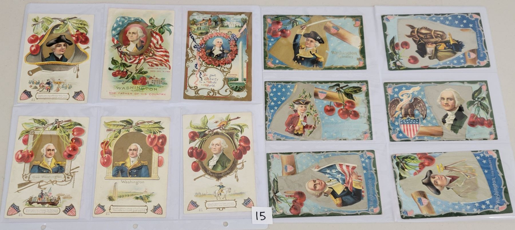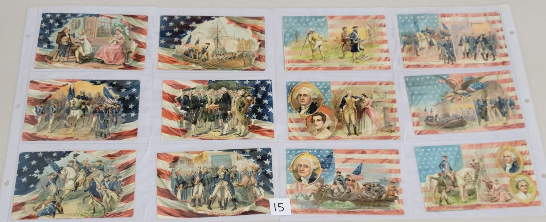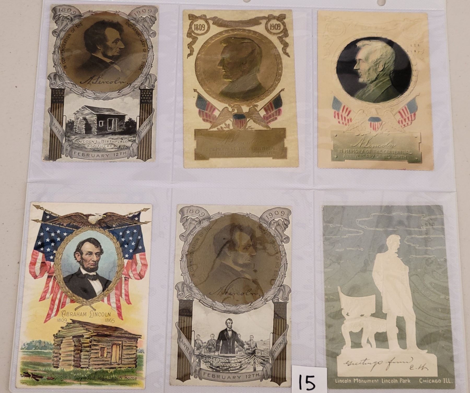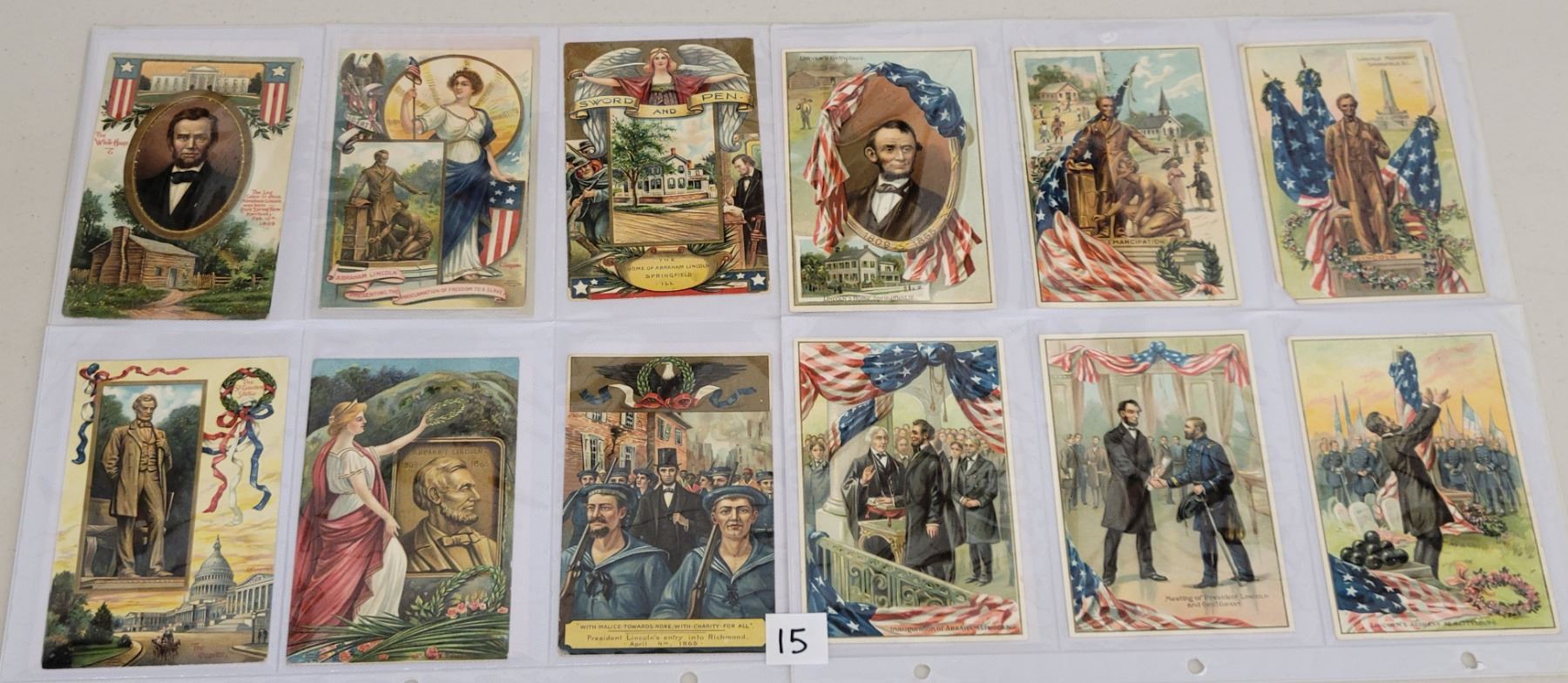 Album of approx. 185 patriotic greeting postcards of Lincoln & Washington.