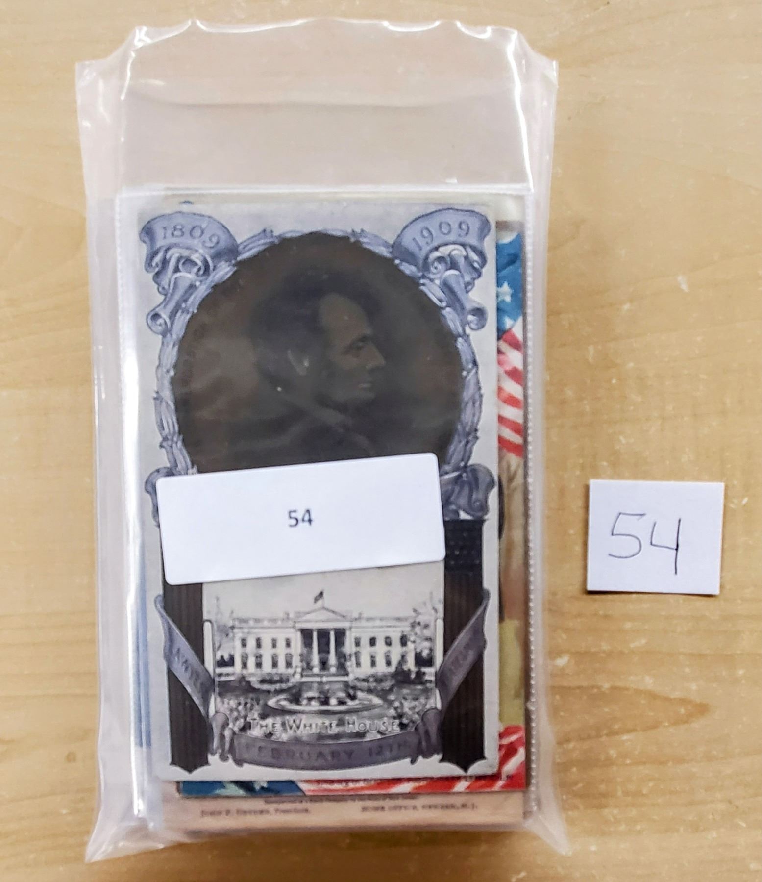 Over 40 pieces. Mostly postcards. Pre chrome era. Patriotic greeting postcards, some ephemera.