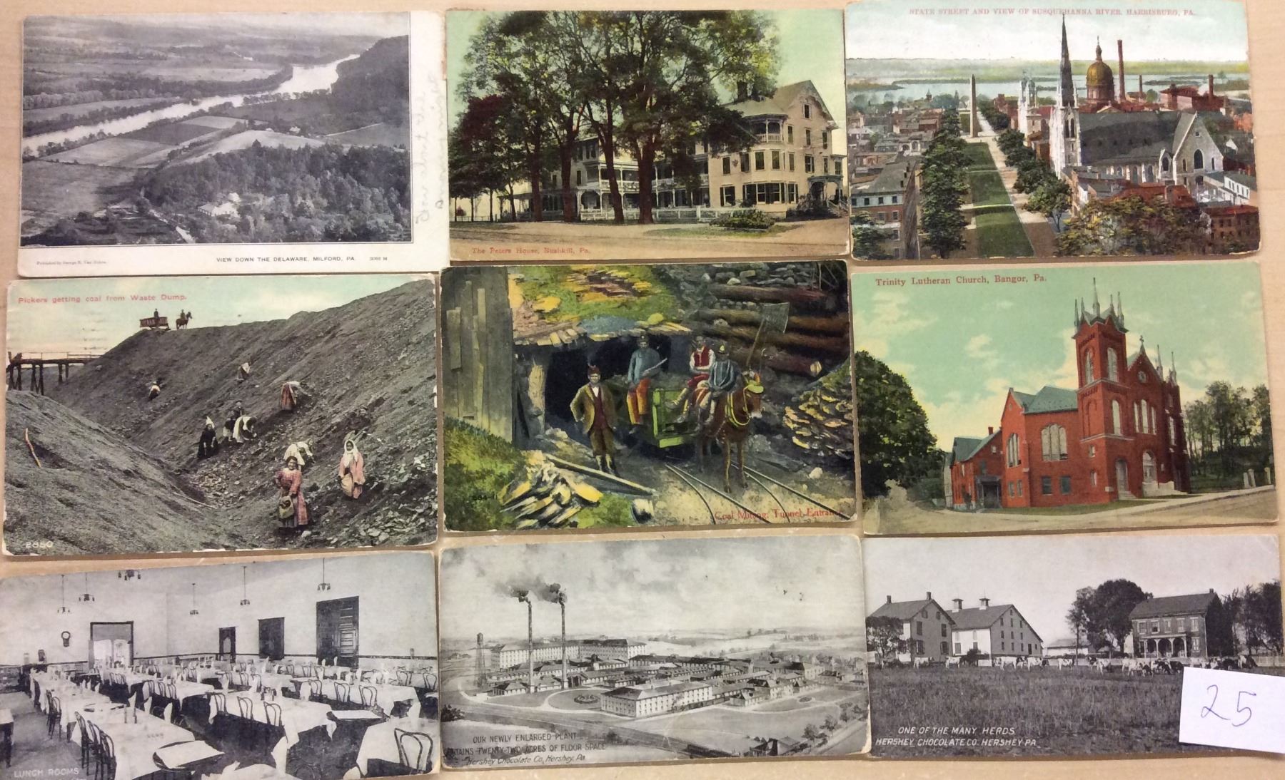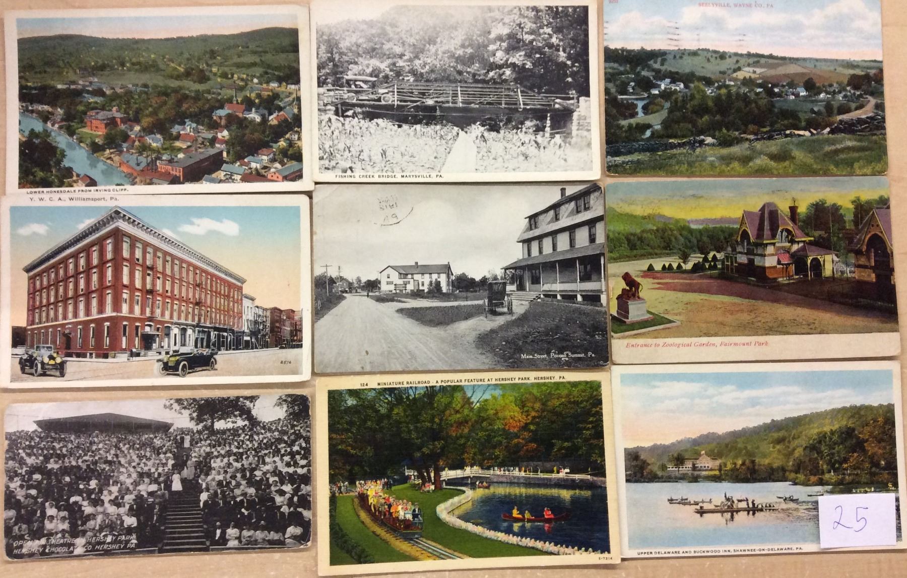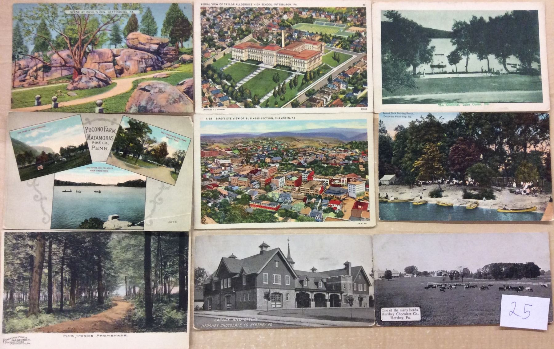Over 300 PA postcards. Early to linen. Pictures shown are just a portion of the lot.