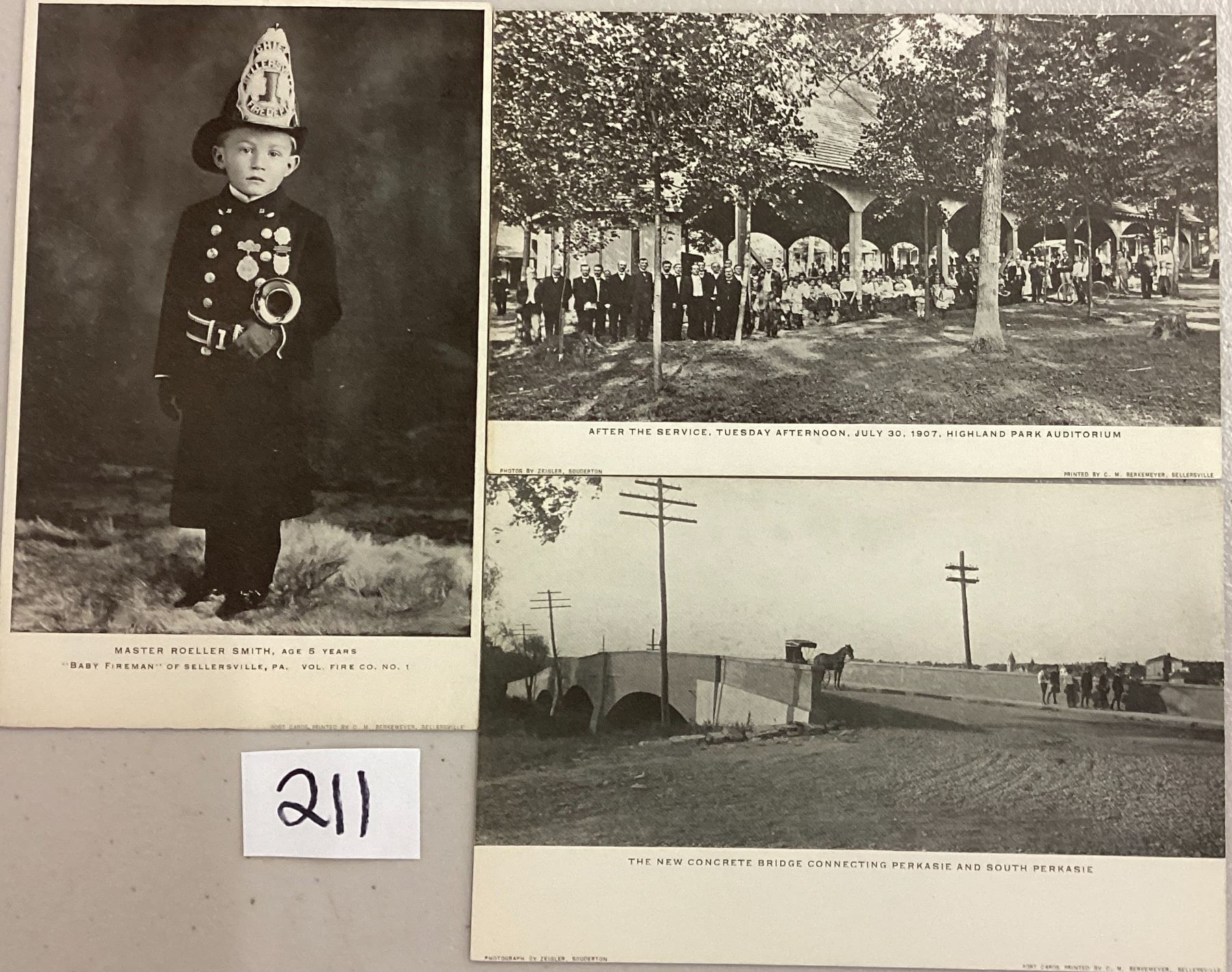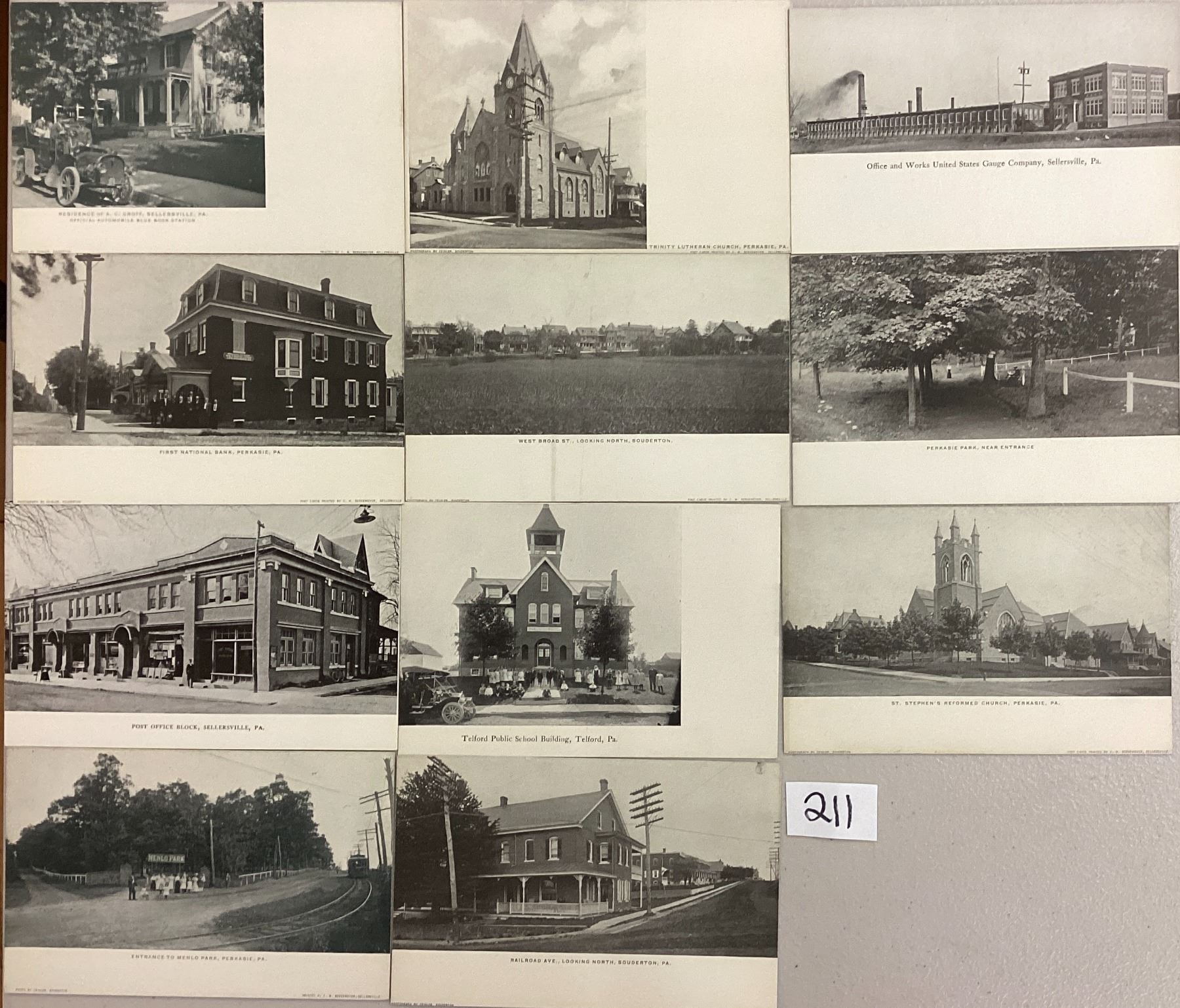 14 black and white two sided view postcards of Pennsylvania by Berkemeyer in Sellersville. Early.