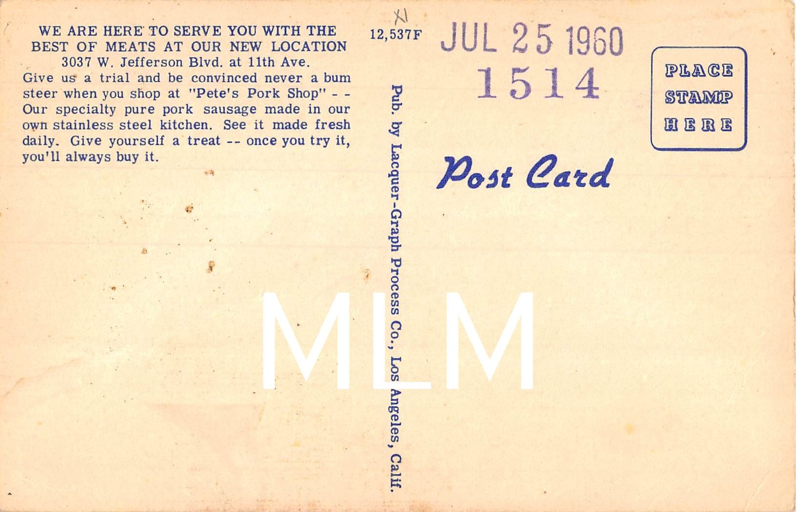 Pete's Pork Shop Butcher Interior Linen Los Angeles, California PC