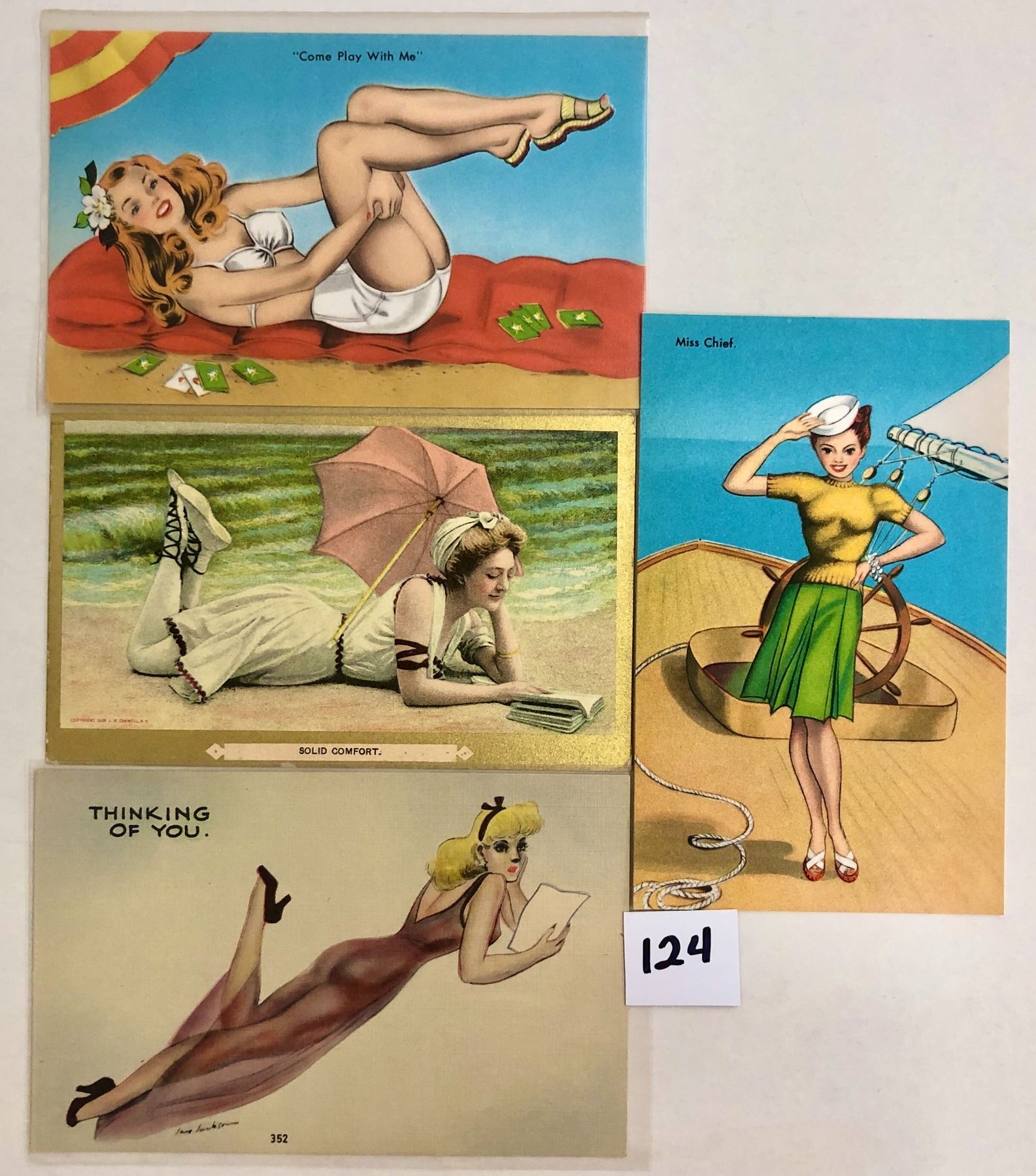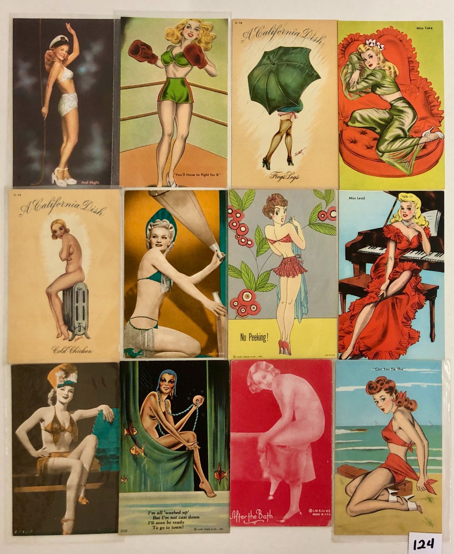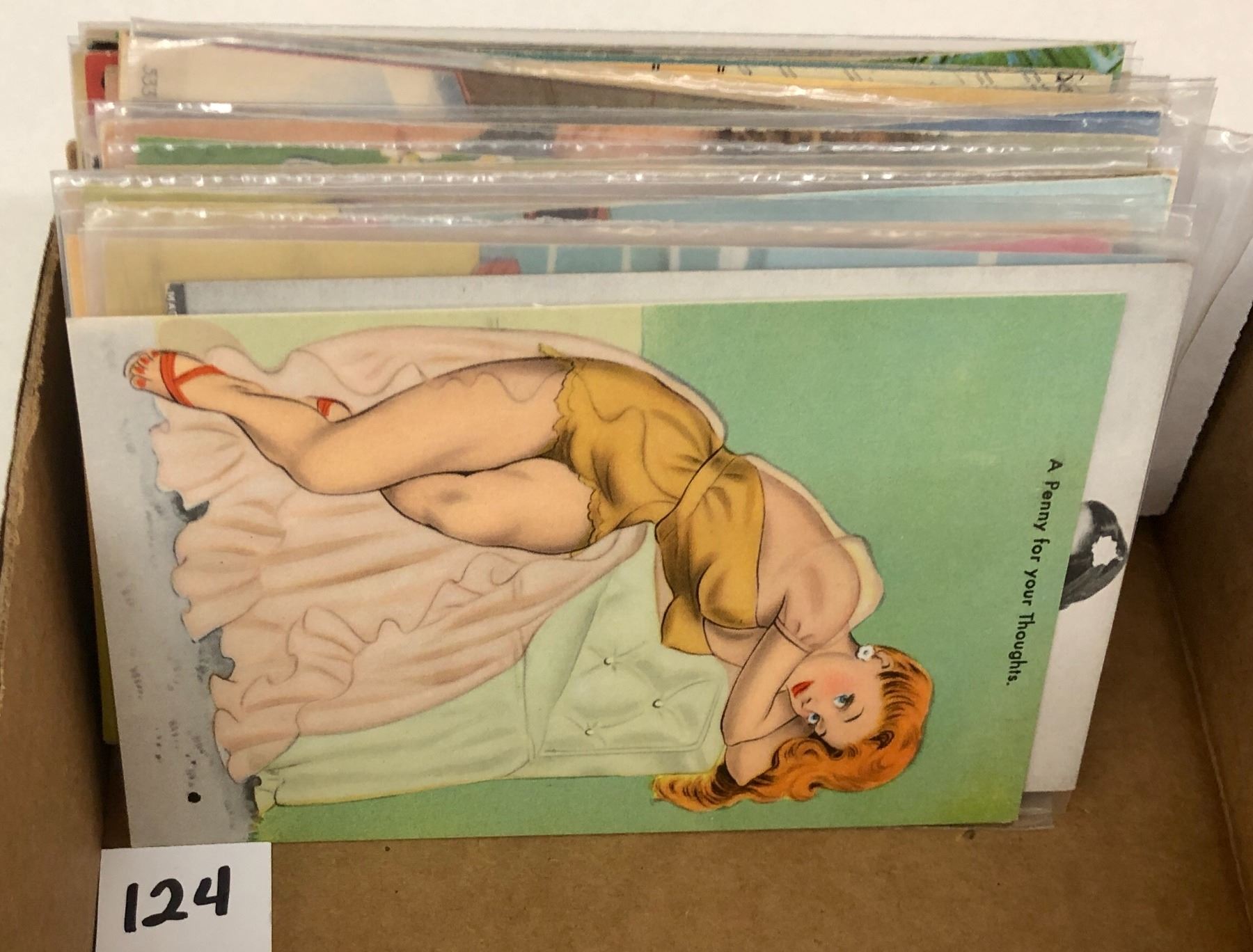 Over 60 pin up postcards. Mostly linen, some arcade.