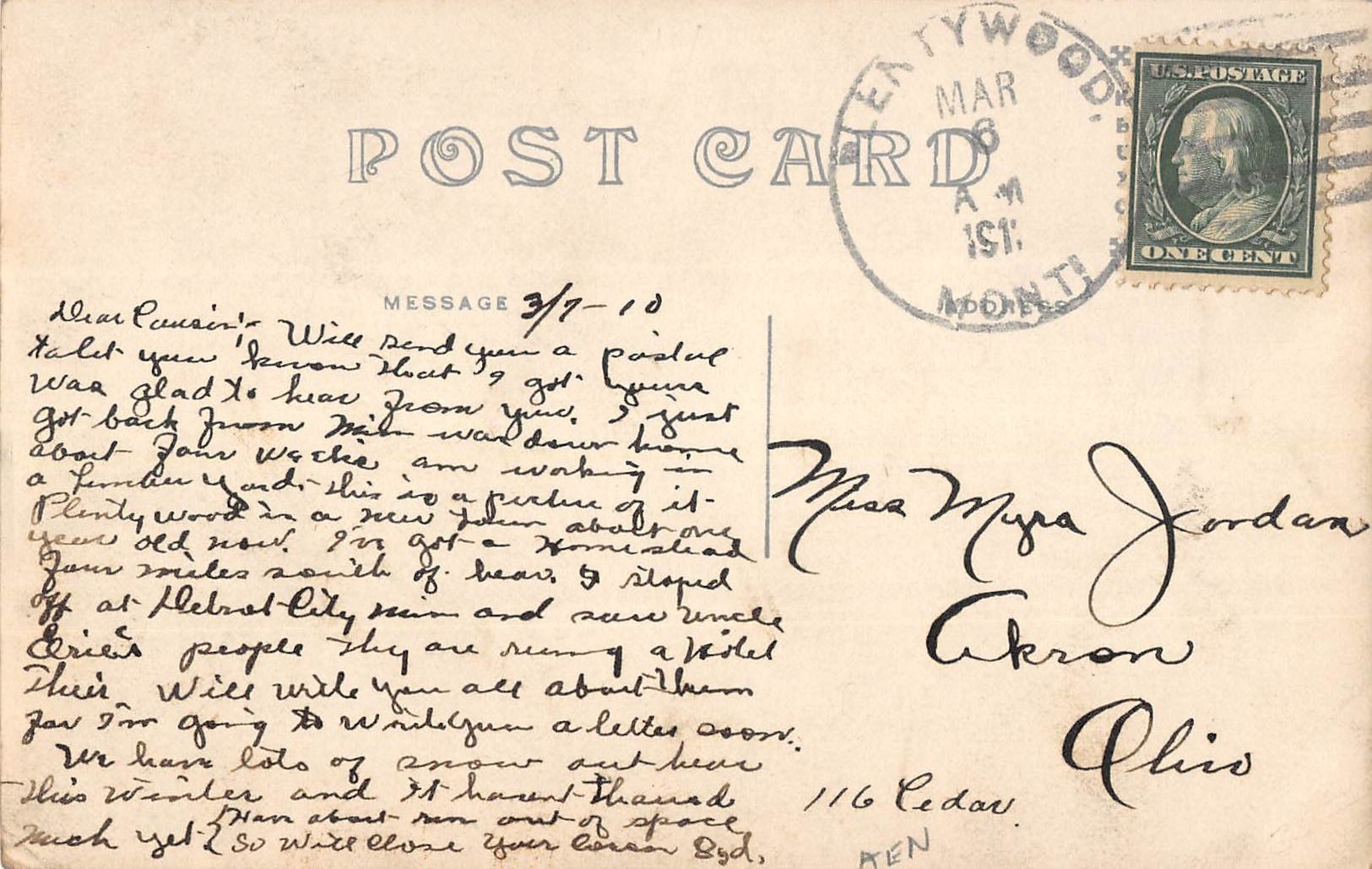 Used, 1910. Good condition but small lower right corner crease.