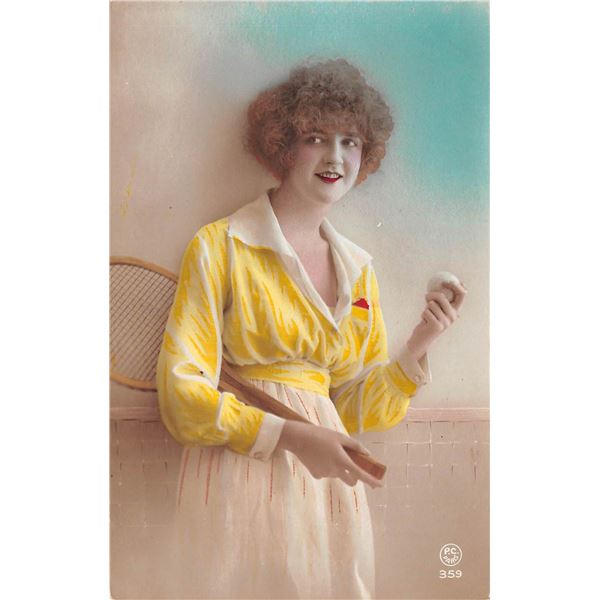 Group of 4 Tinted Photo Women & Tennis Racket Postcards81 - Group of 4 Tinted Photo Women & Tennis Racket Postcards