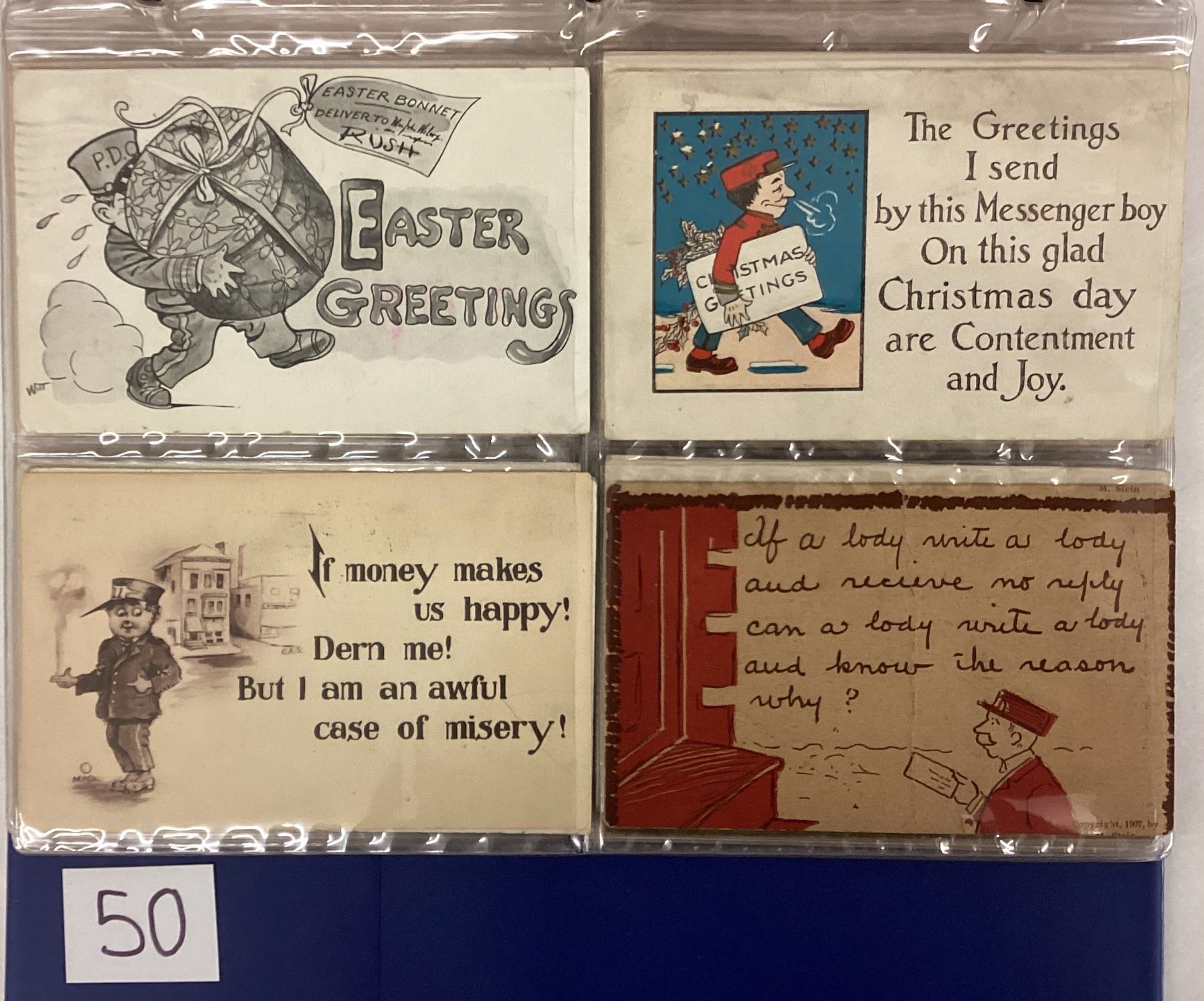 Over 55 postcards with postmen. Early.