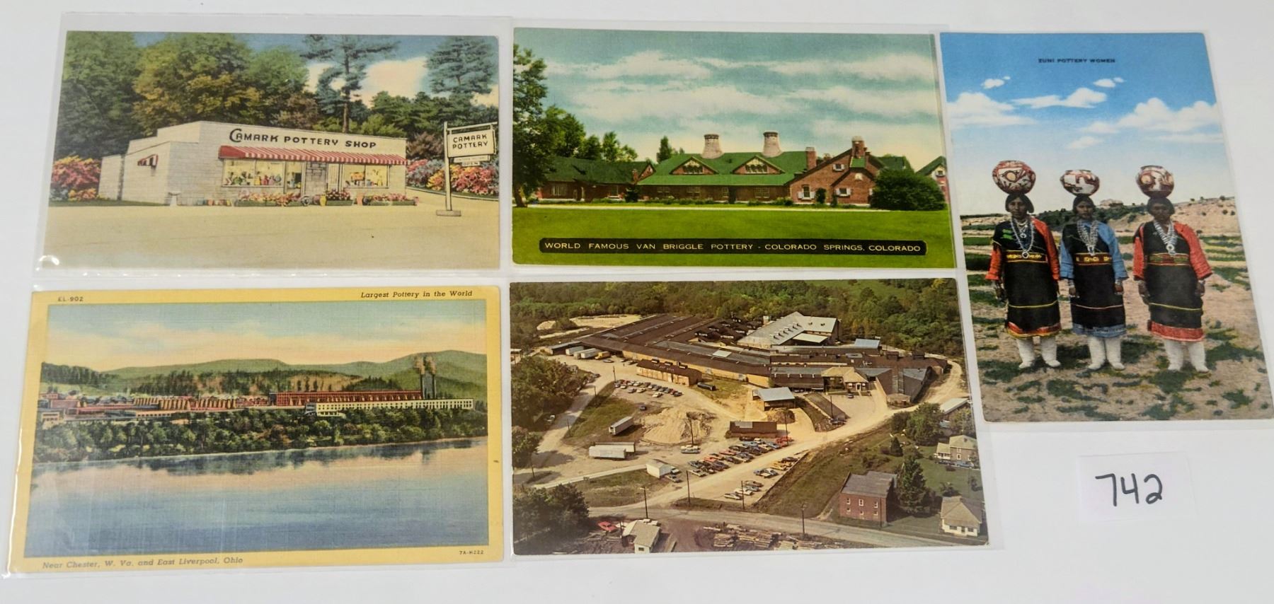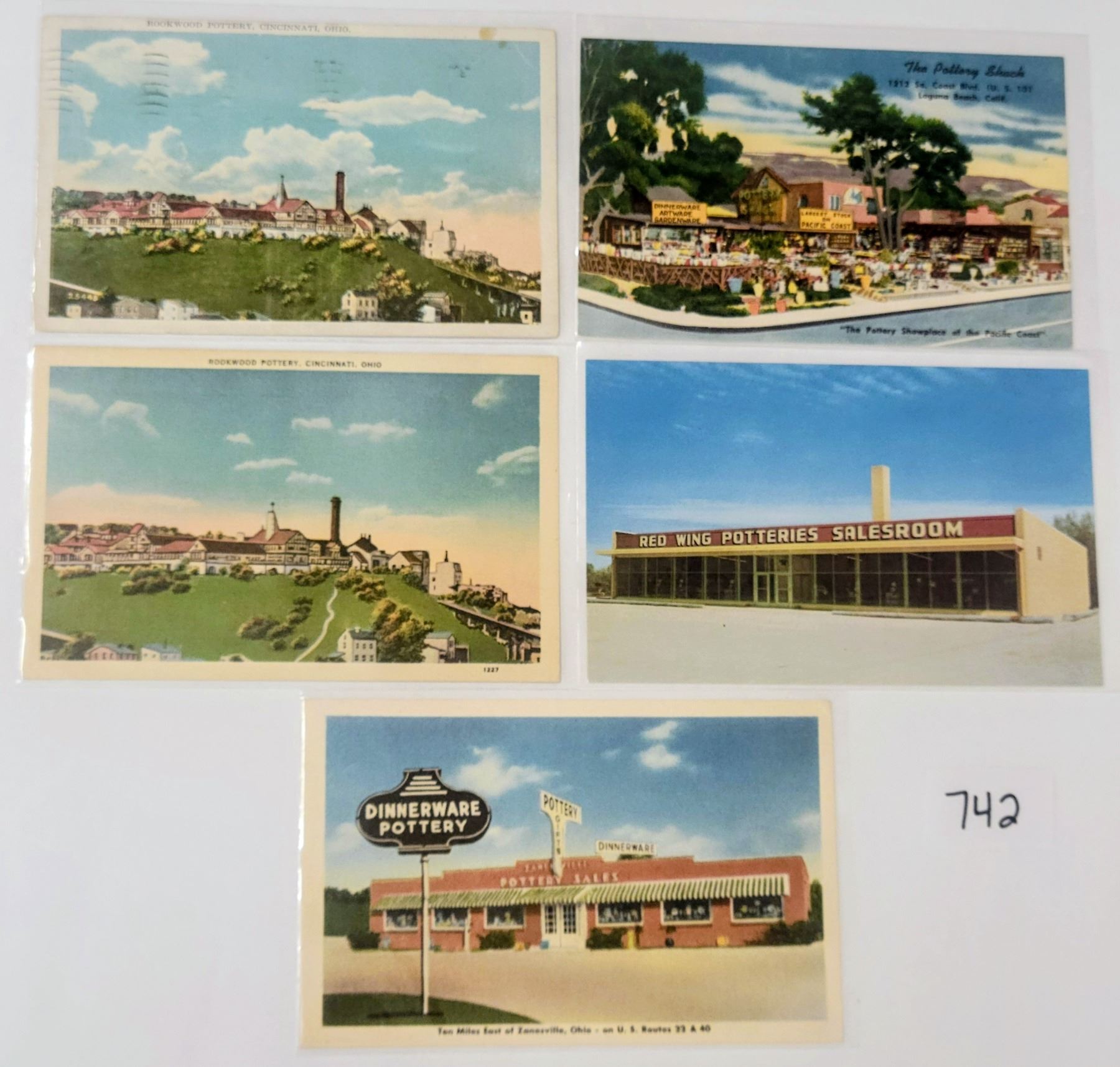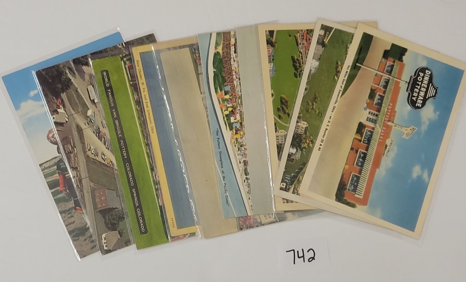 10 pottery postcards. Linen to standard size chrome.