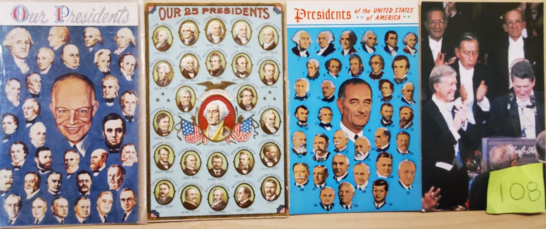 Approx. 600 cards of presidents. Mostly sorted. Dozens and dozens of different presidents. Lincoln, Roosevelt, Wilson, and many others.