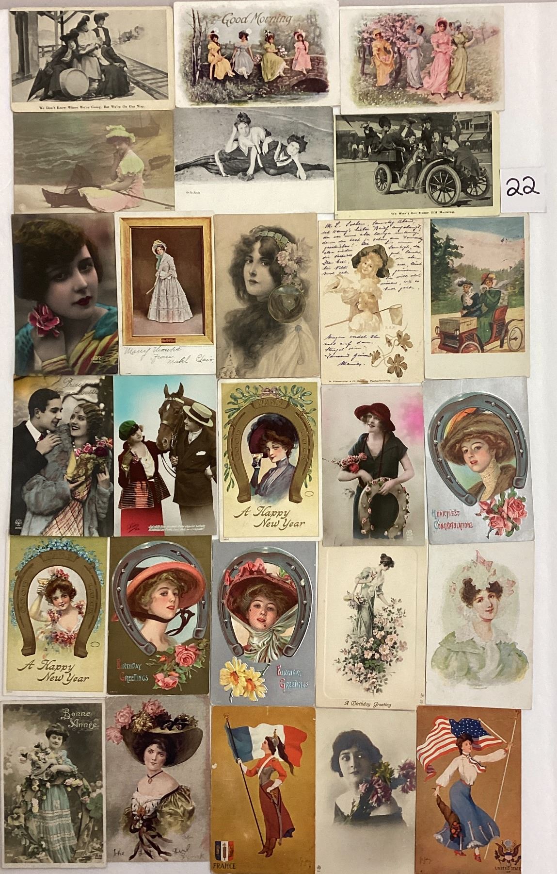 Over 50 pretty lady postcards. Some tinted real photo postcards.