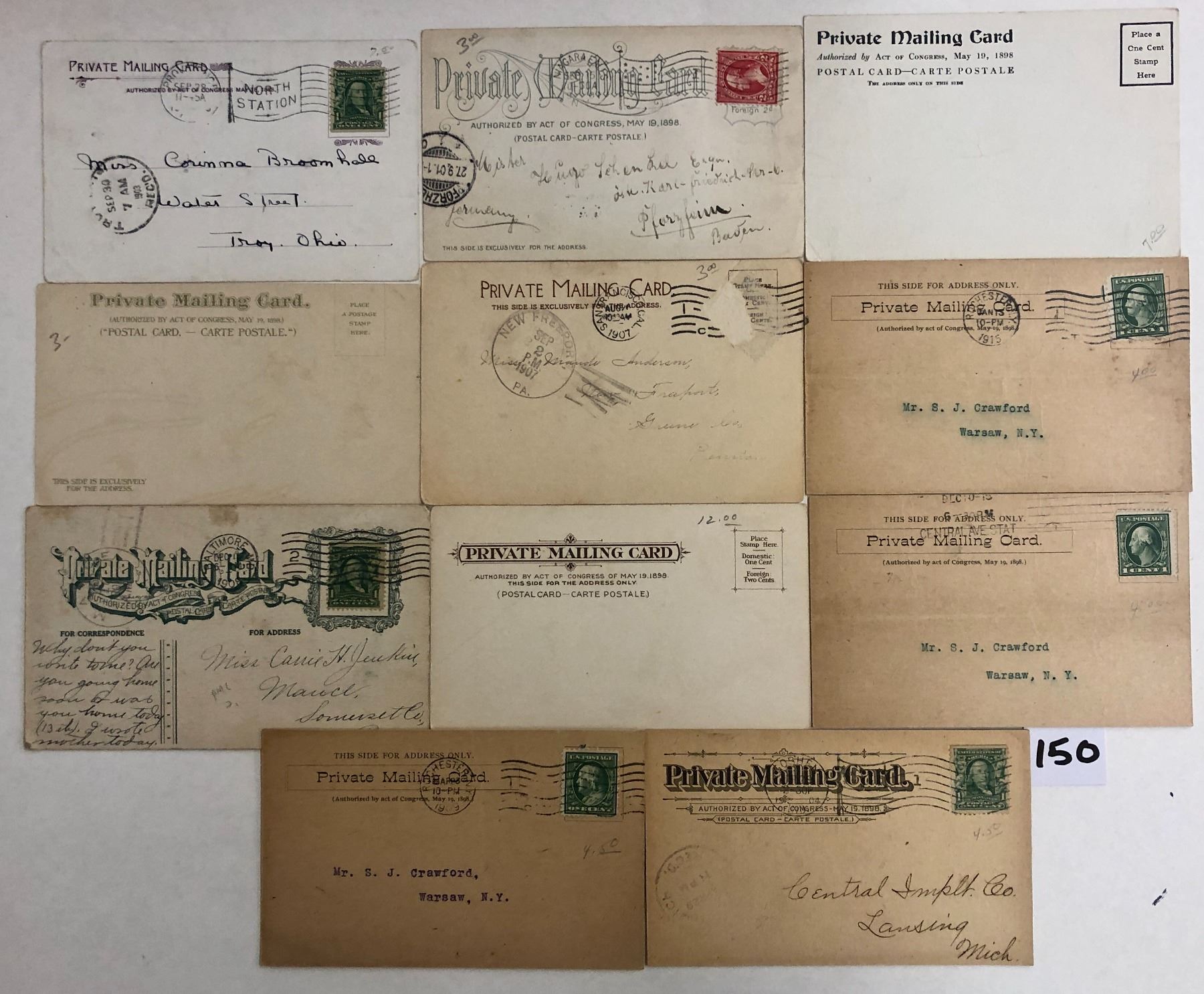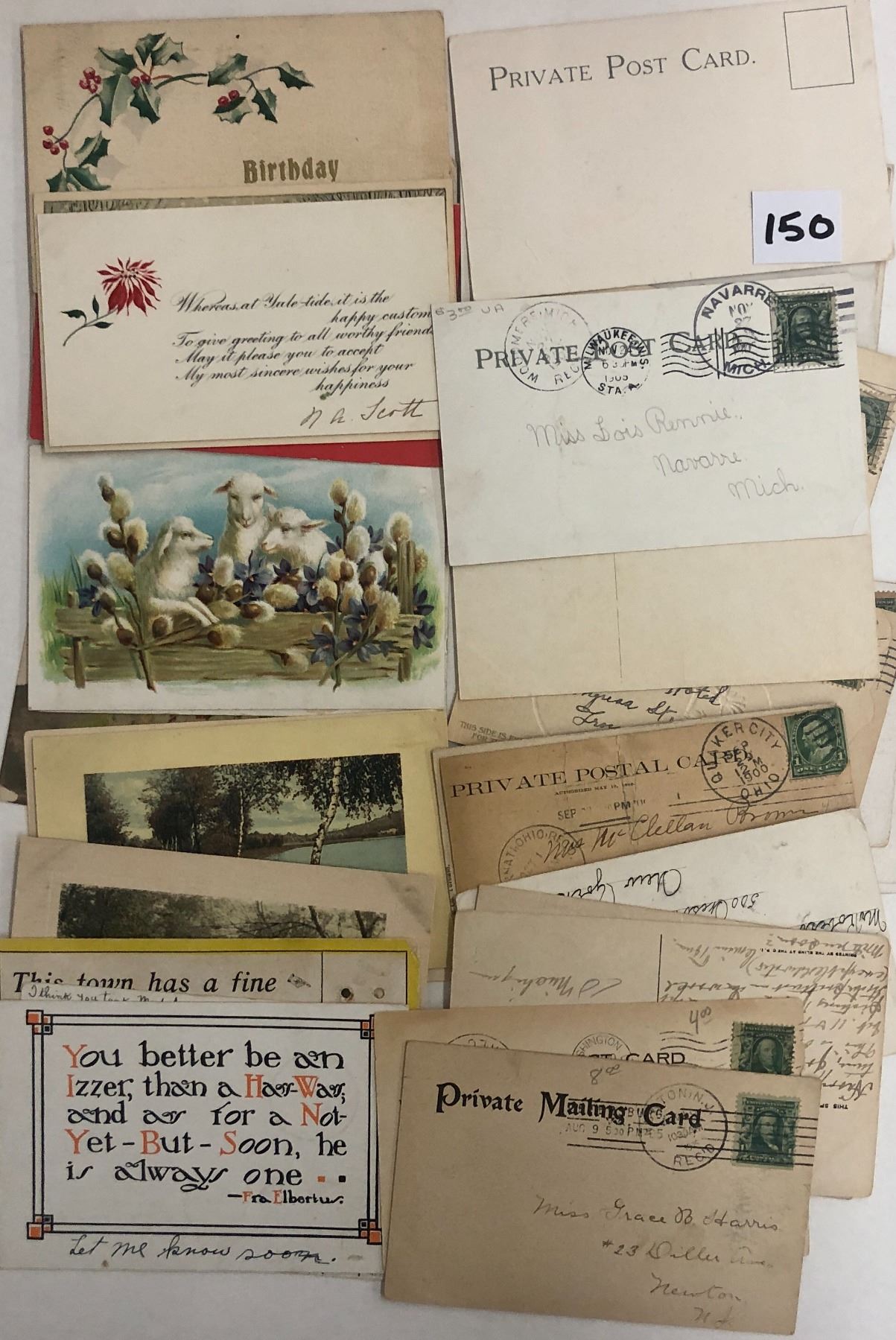 Over 50 private post & mailing postcards. Early. Many used.