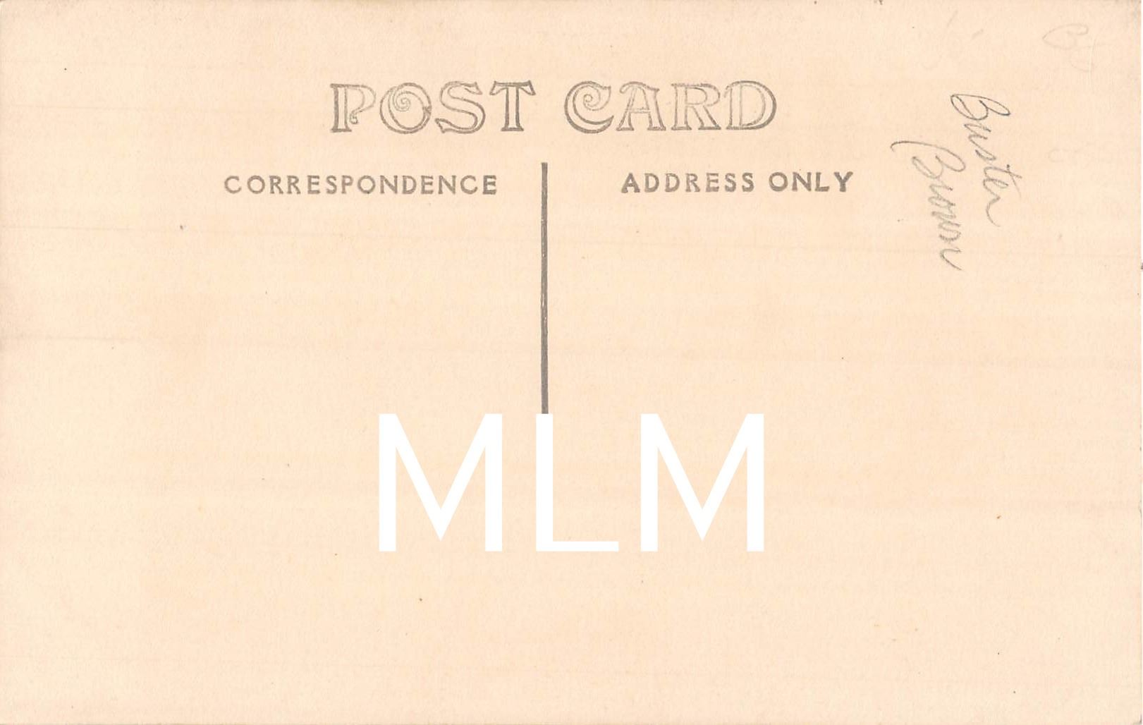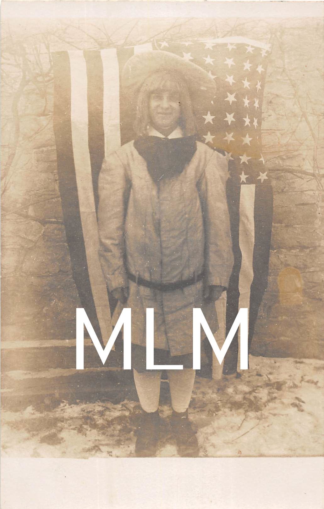 Real Photo Buster Brown in front of American Flag Patriotic Photo Postcard
