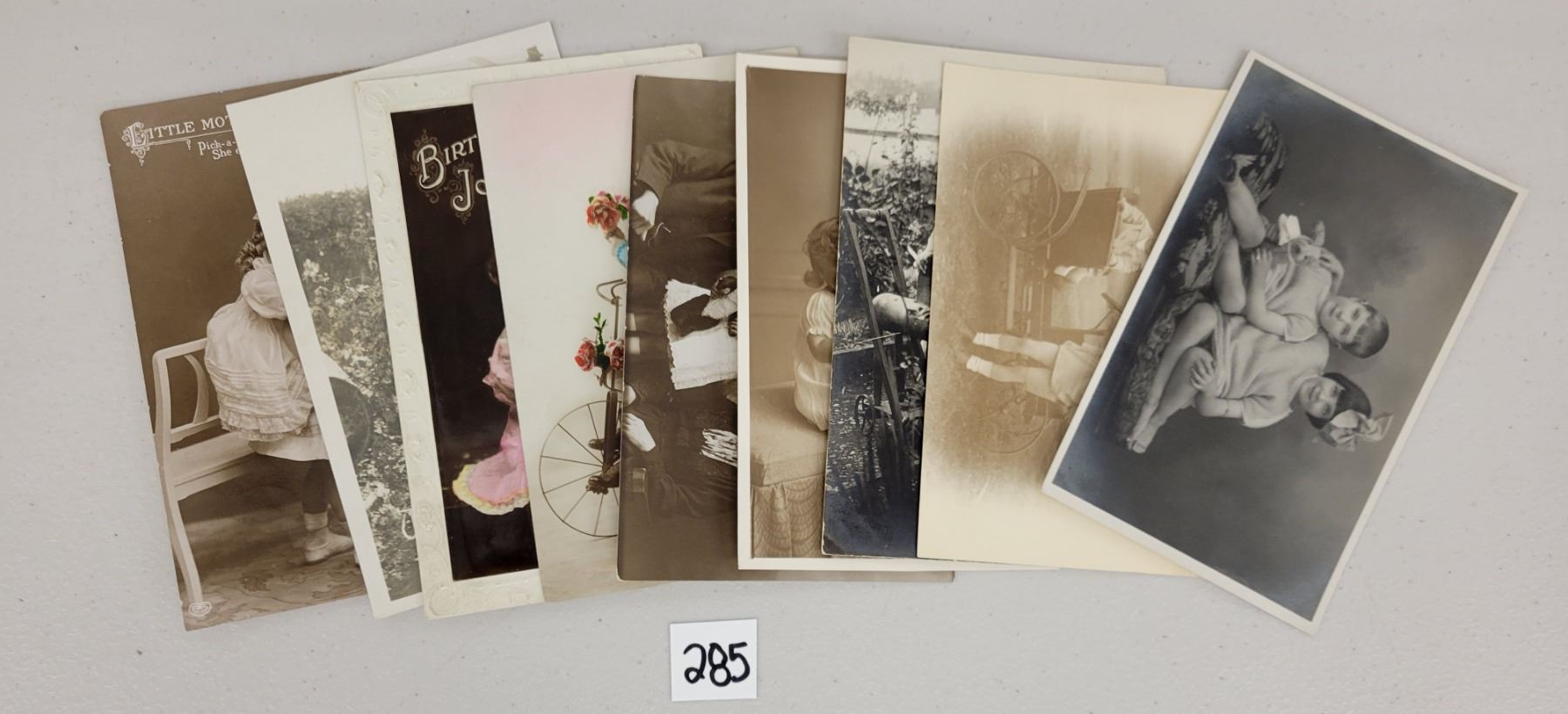 9 real photo of children riding, playing with toys.
