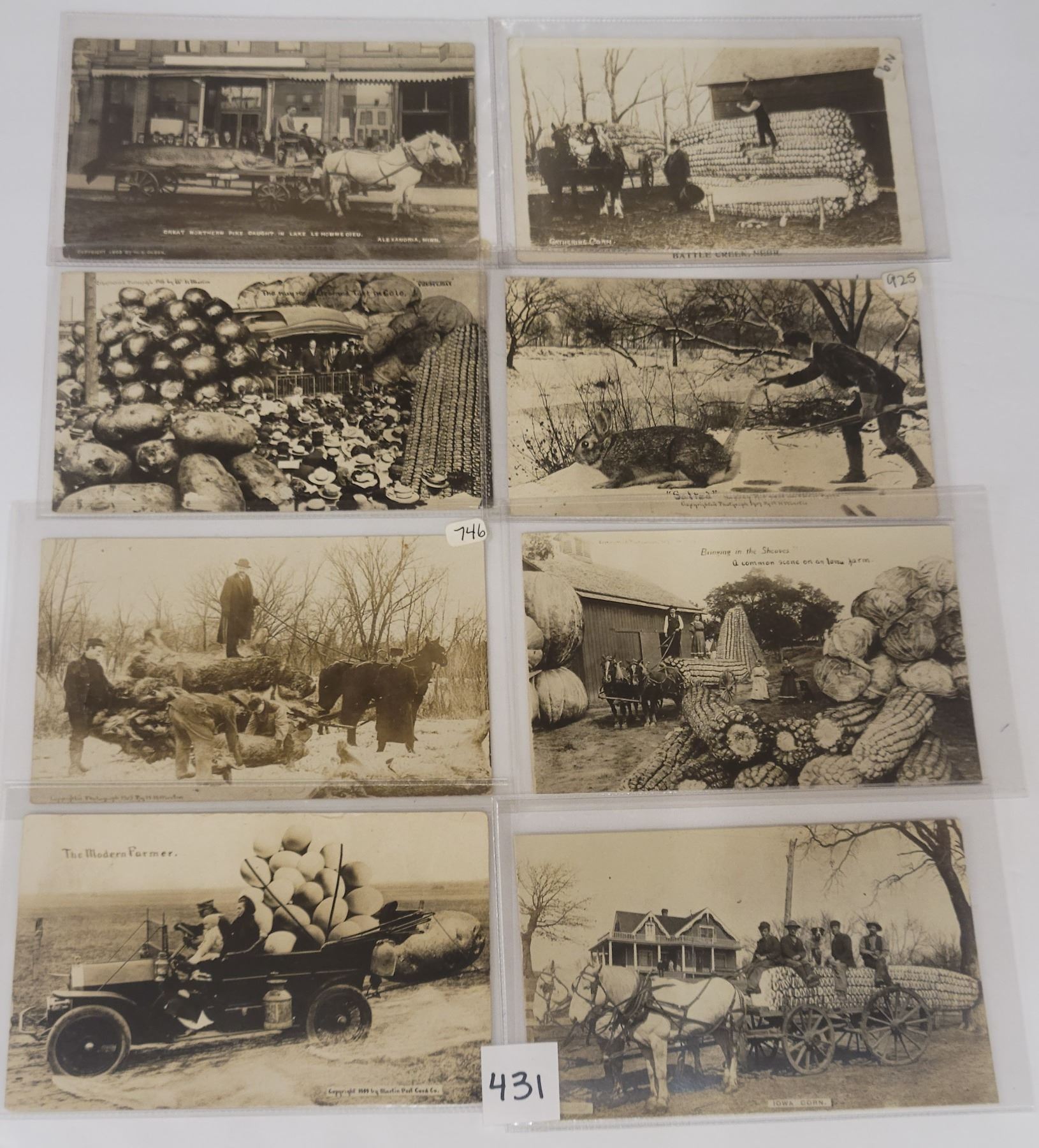 8 photo exaggeration postcards.
