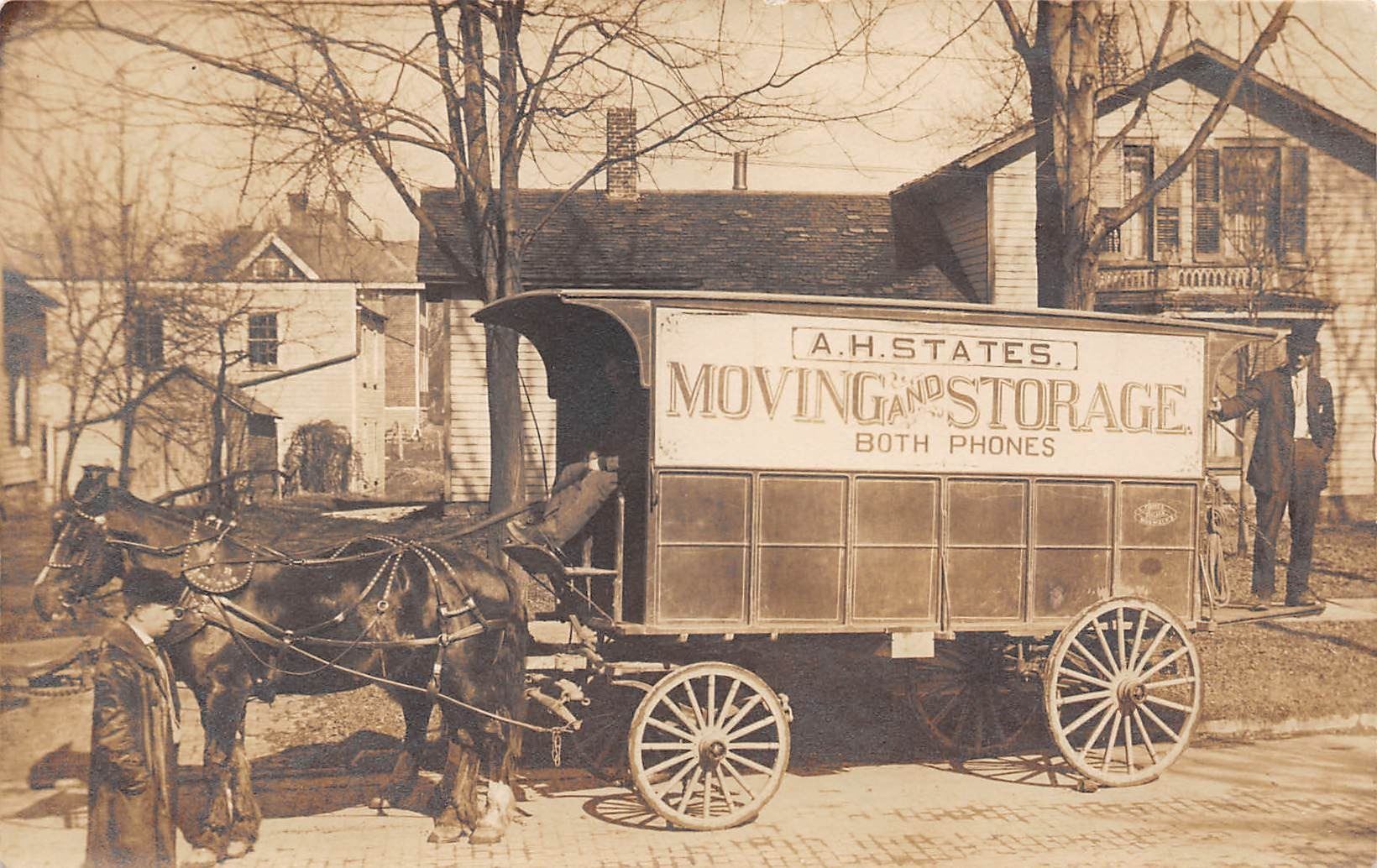 Real Photo Horse Drawn Wagon A.H. States Moving & Storage Postcard