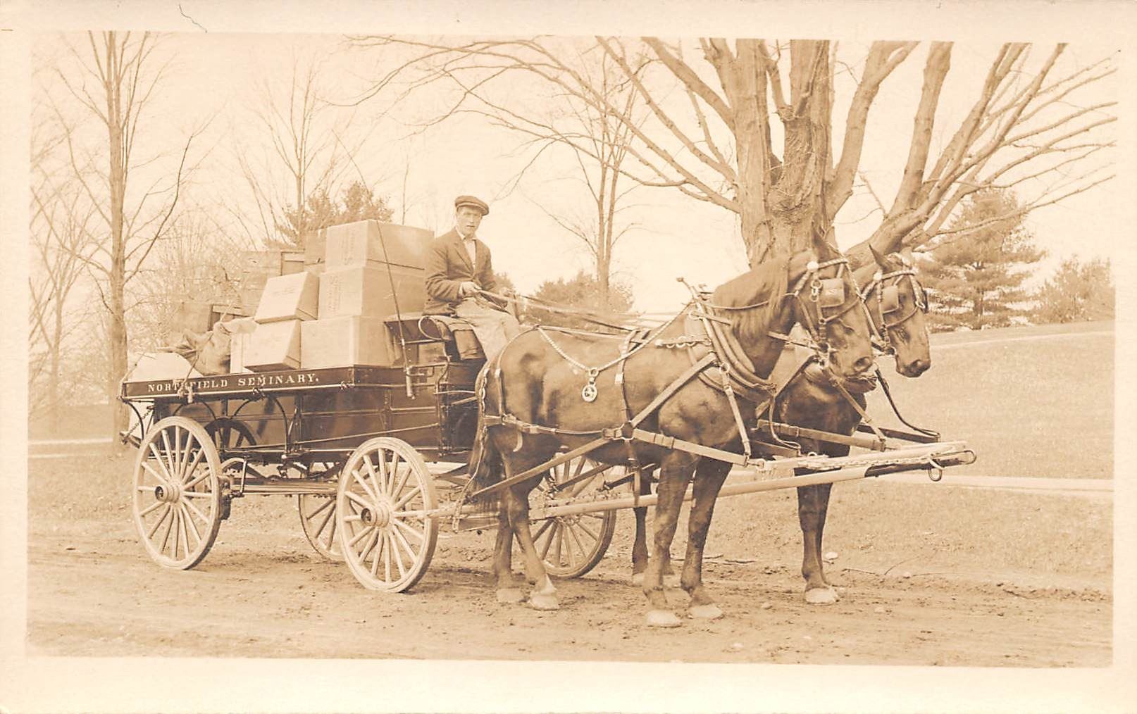 Real Photo Horse Drawn Wagon Norhtfield Seminary Postcard