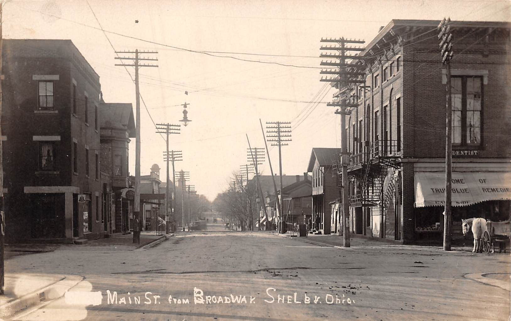 Real Photo Main Street from Broadway Shelby, Ohio Postcard