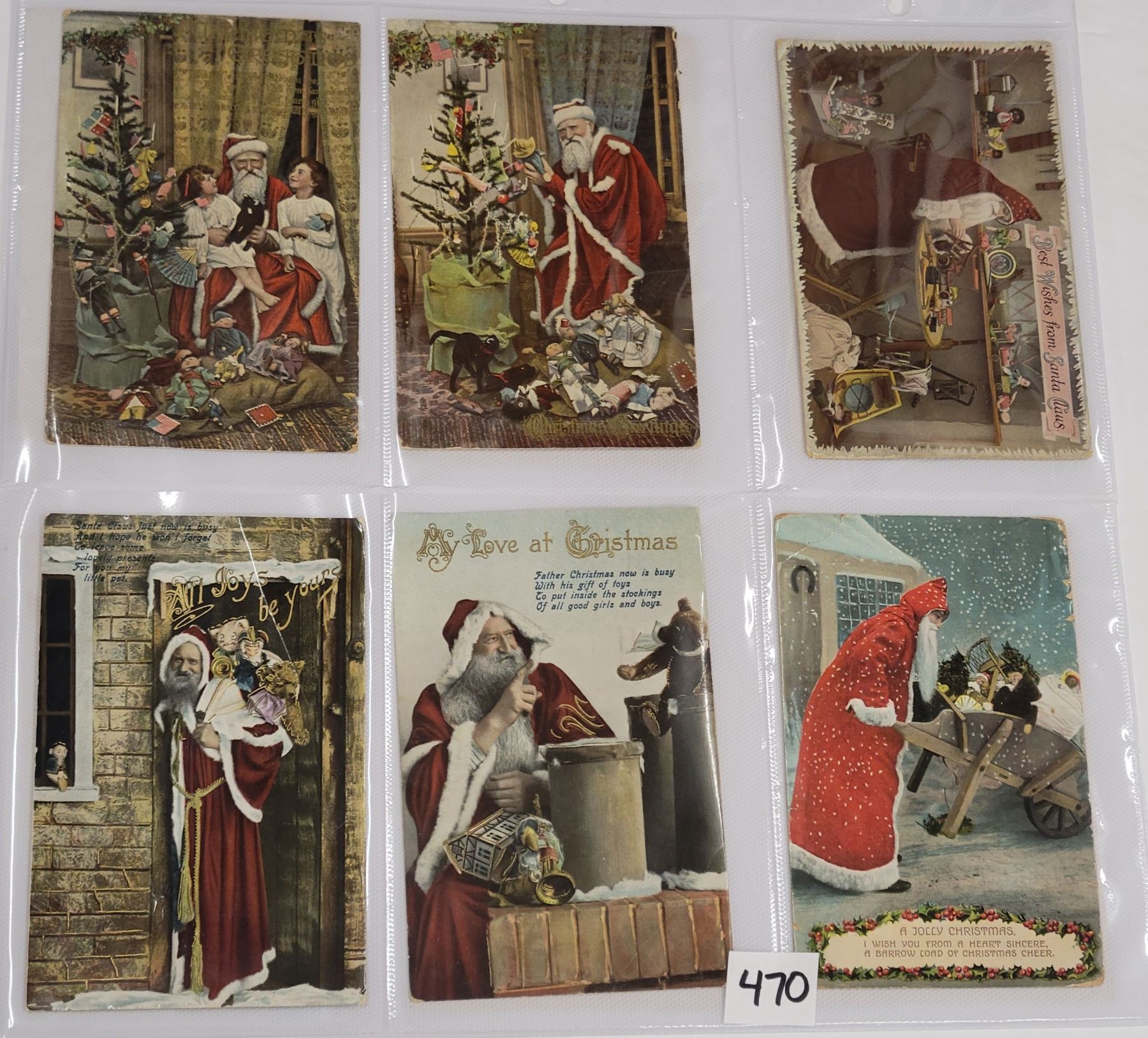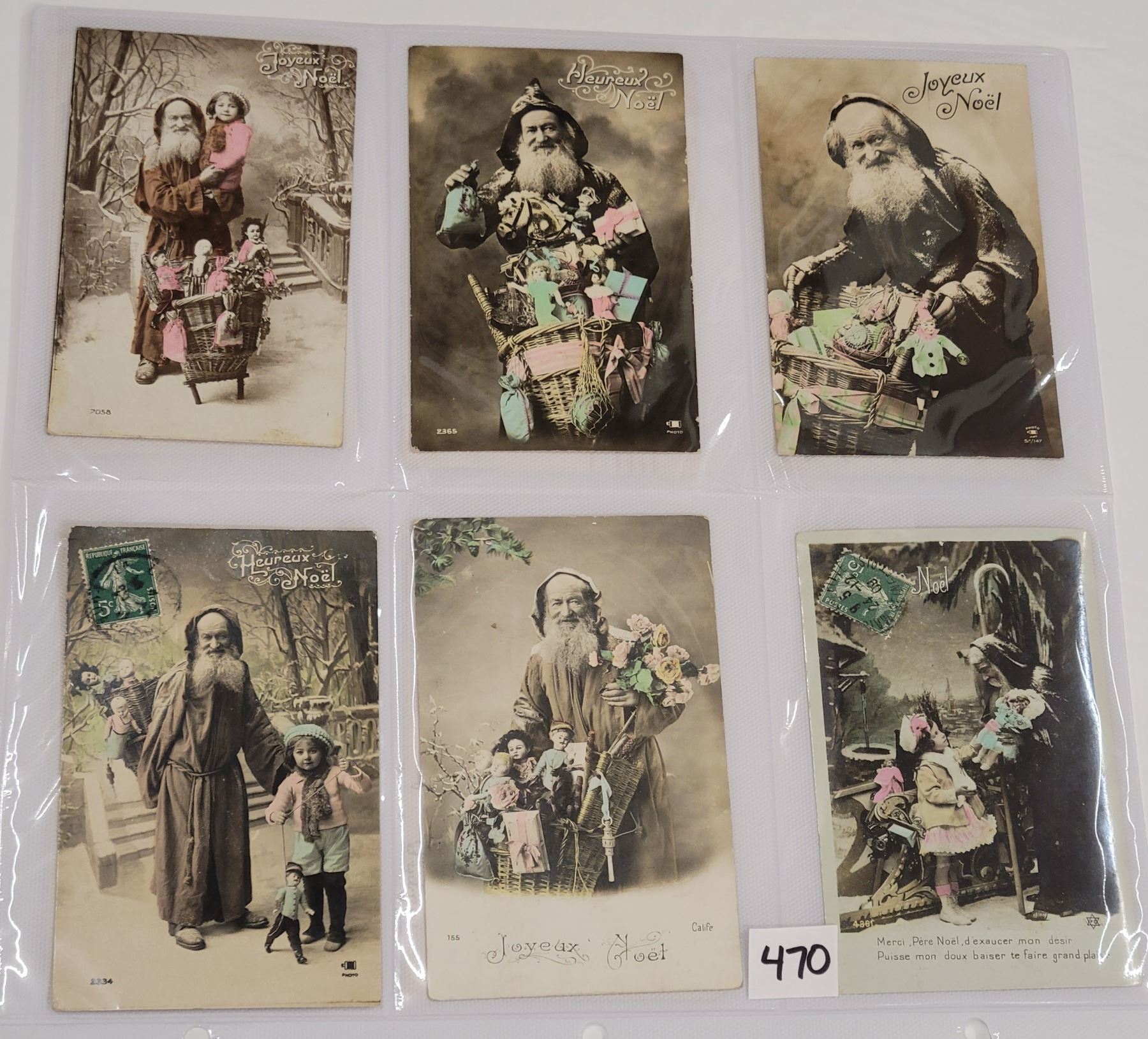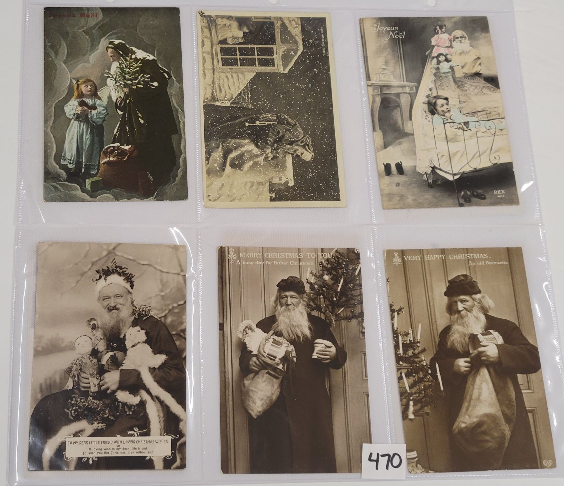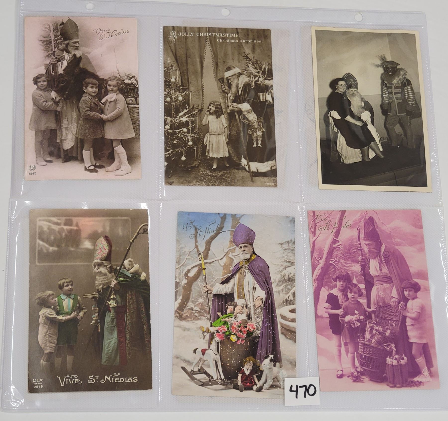 Approx. 65 photo Santa postcards. Many tinted photos.