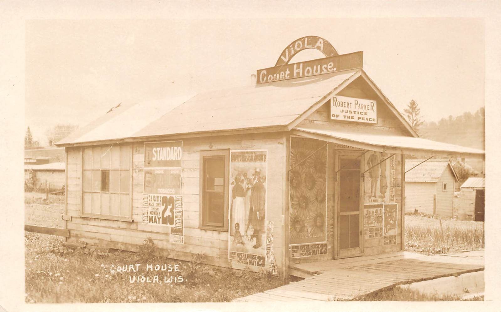 Real Photo Viola, Wisconsin Court House Unique With Posters Postcard