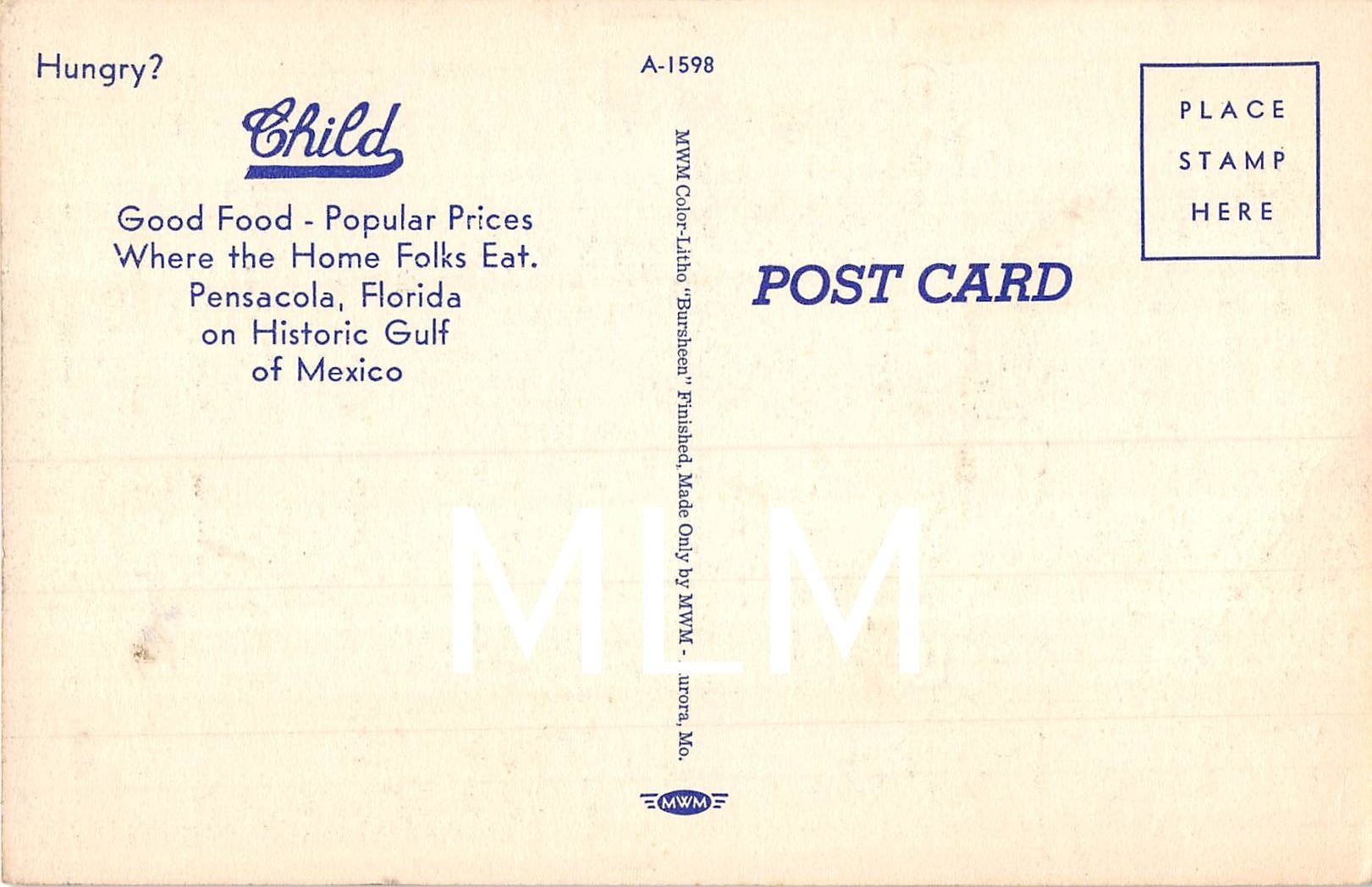 Restaurant Front Child Pensacola, Florida Linen Postcard