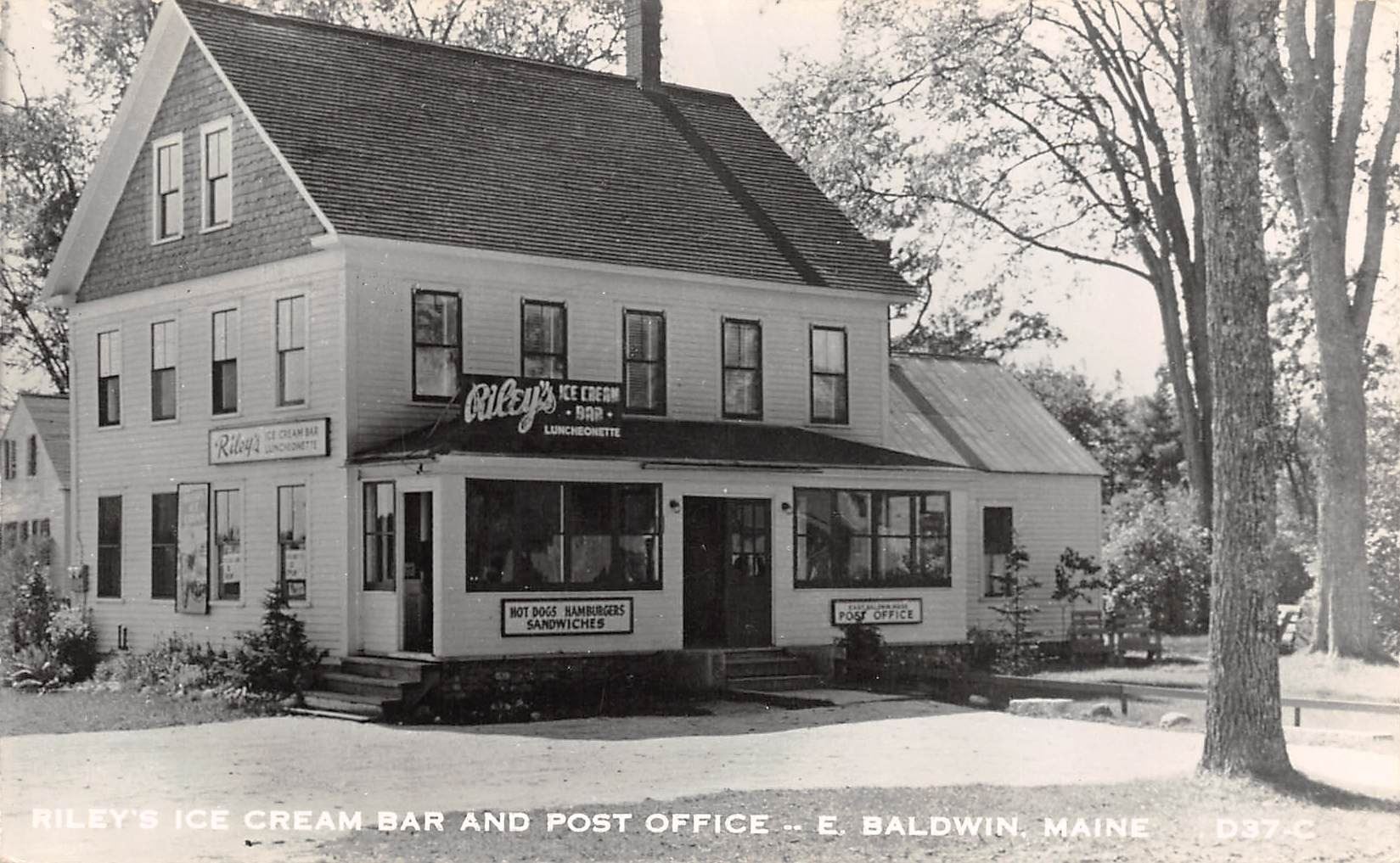Riley's Ice Cream Bar & Post Office E. Baldwin, Maine Real Photo Postcard