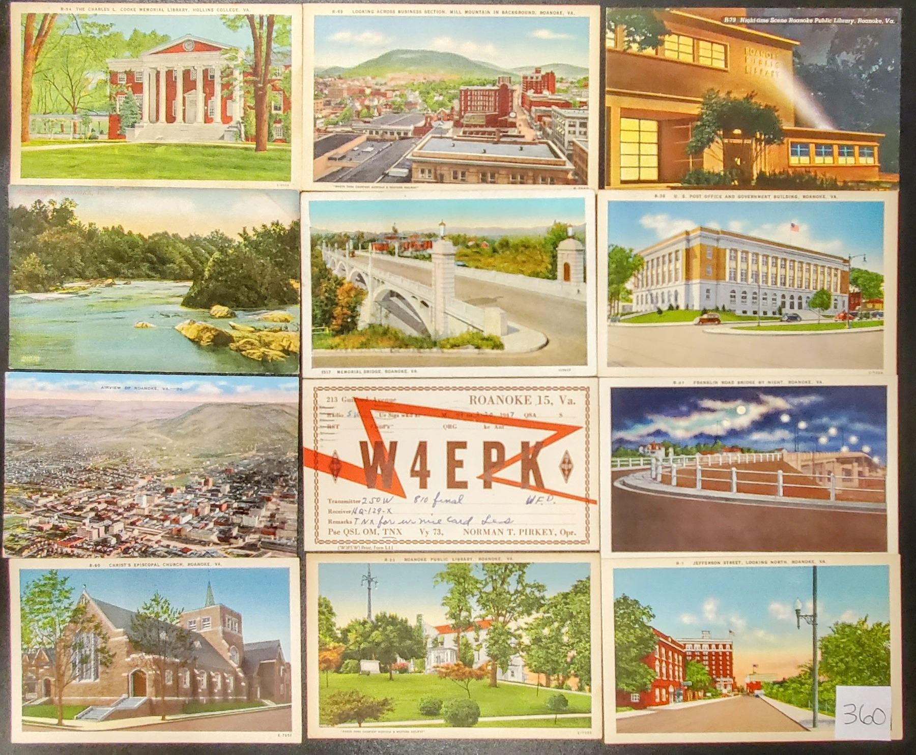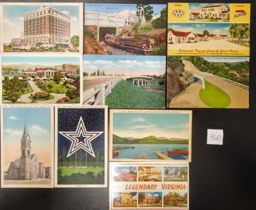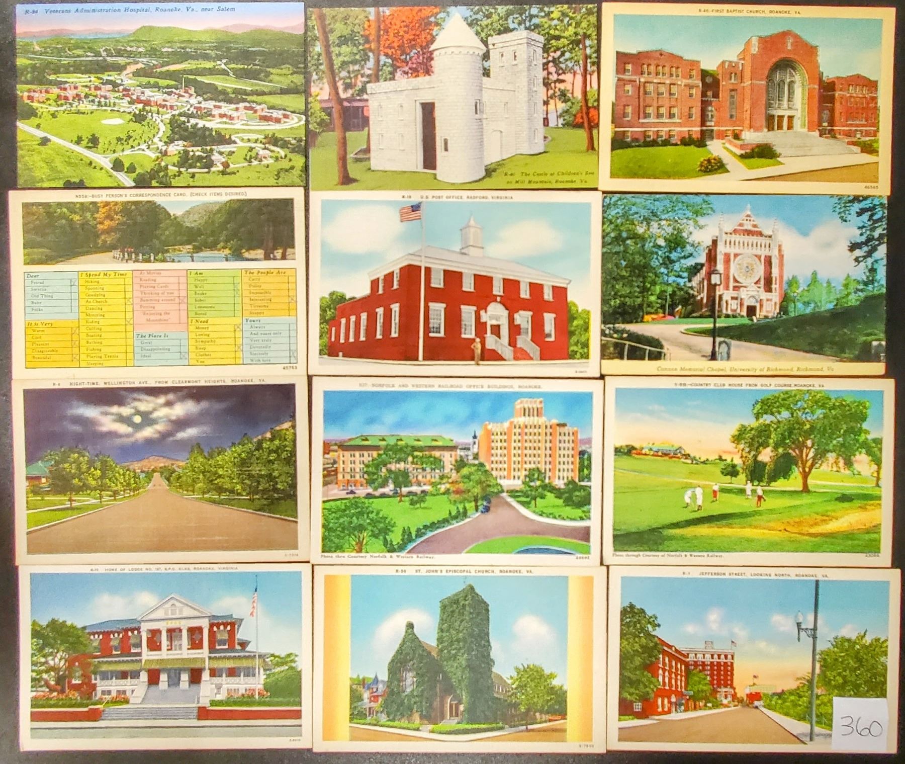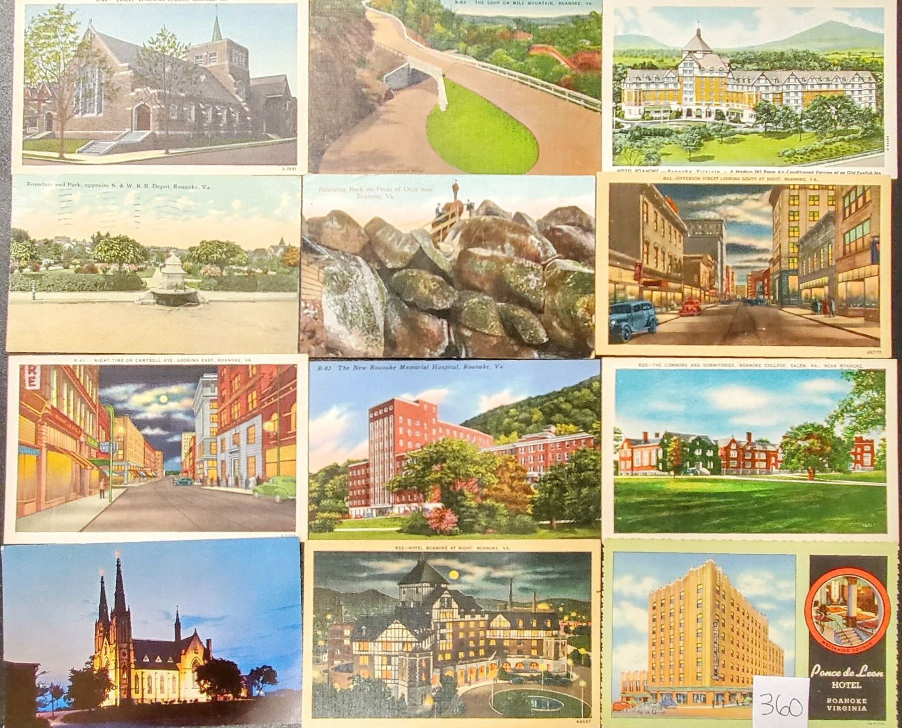 Over 225 Roanoke postcards. Early to linen mostly. Mostly linen. Some duplicates.