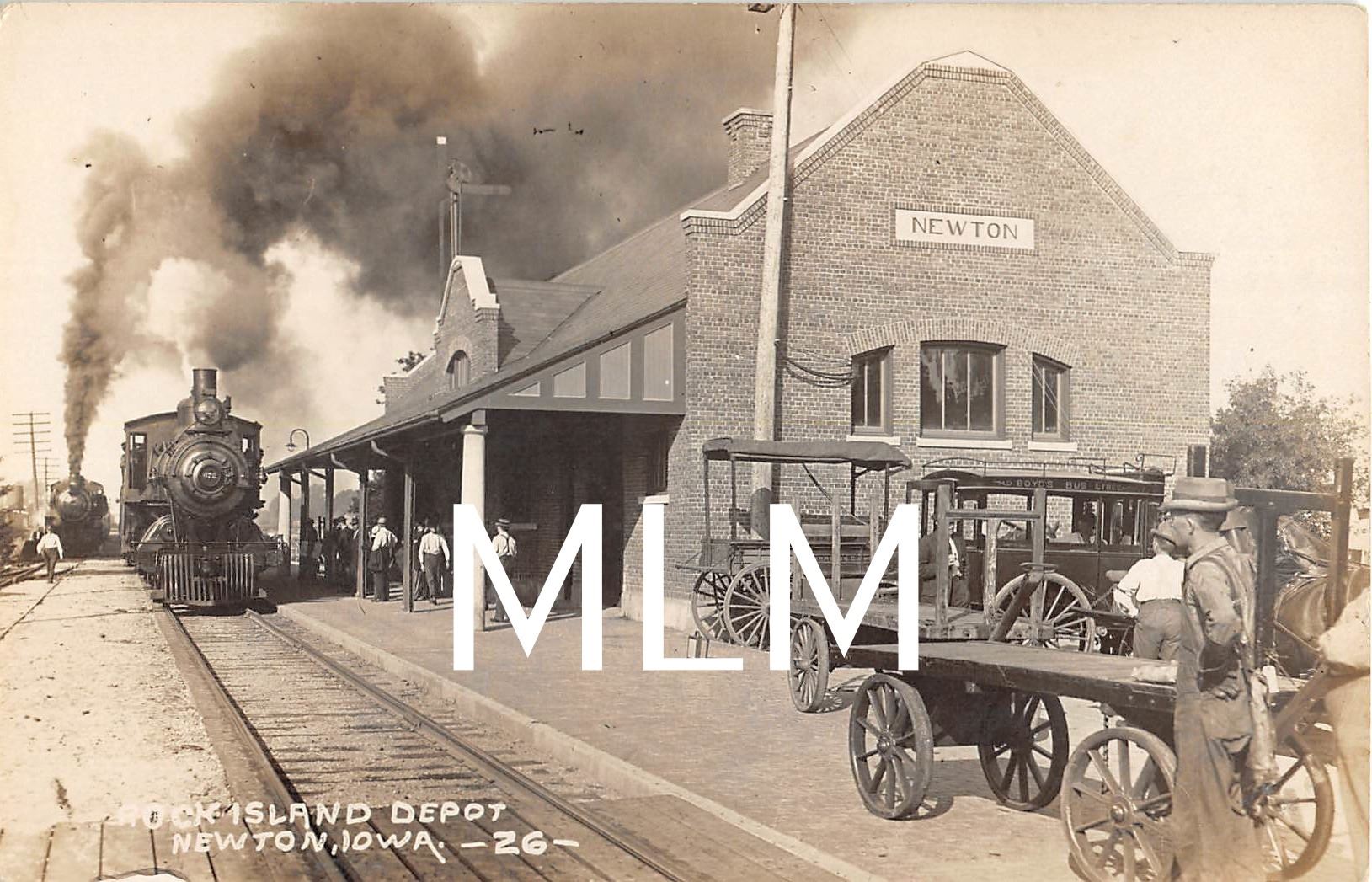Rock Island Depot Train Arriving At Station Newton, Iowa Photo Postcard