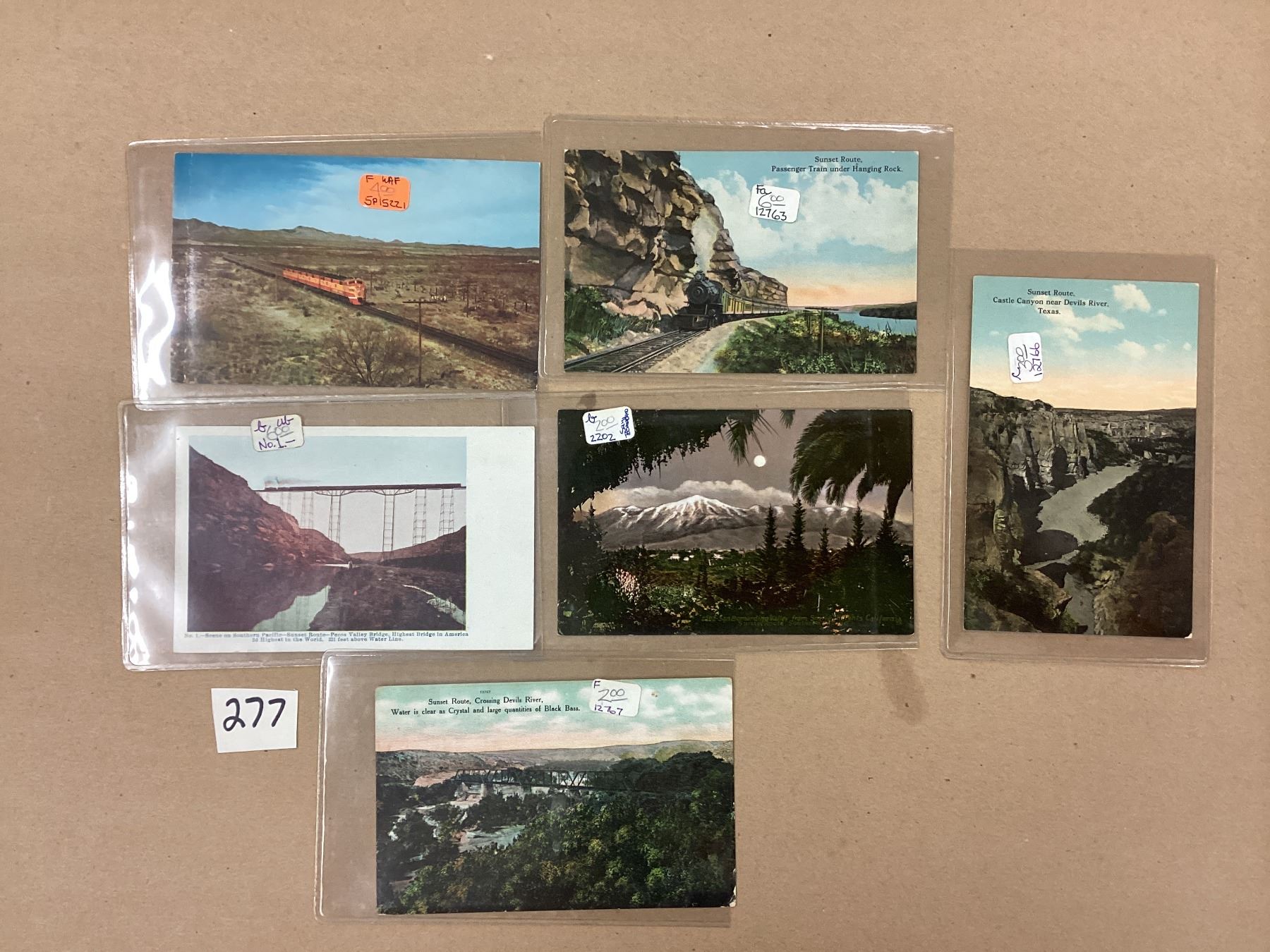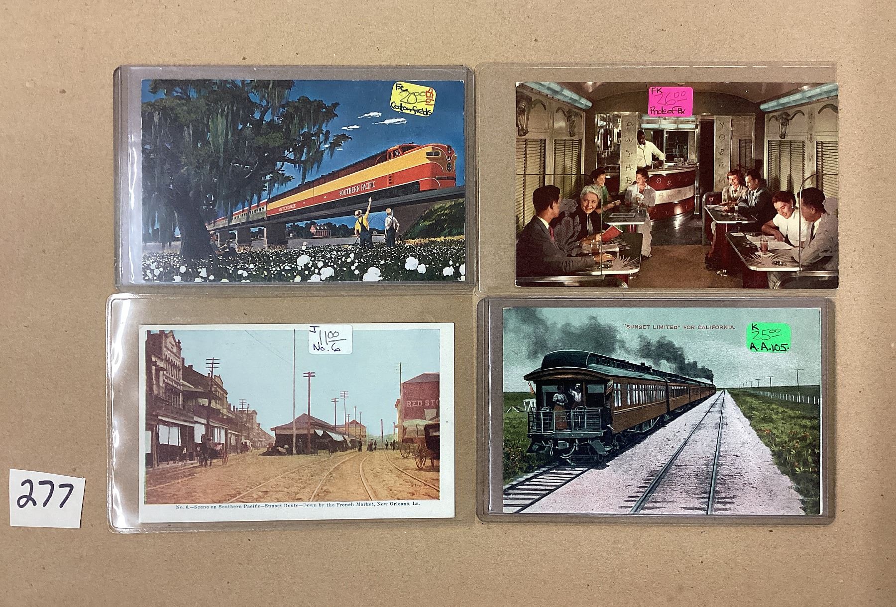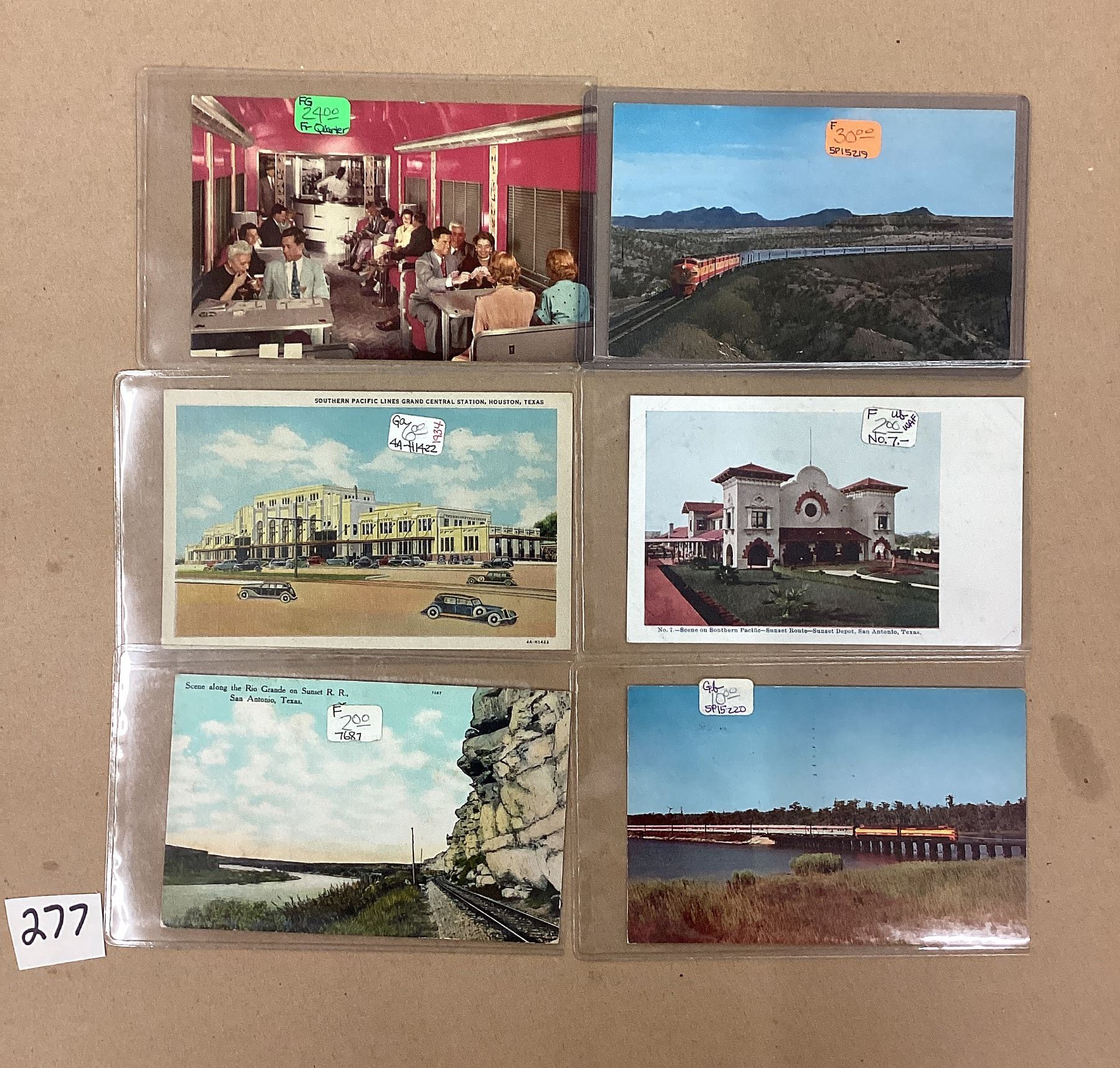 16 SP Sunset Route Railroad postcards. Early to standard size chrome.