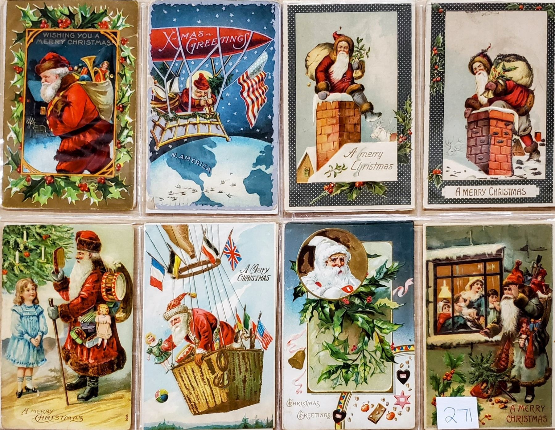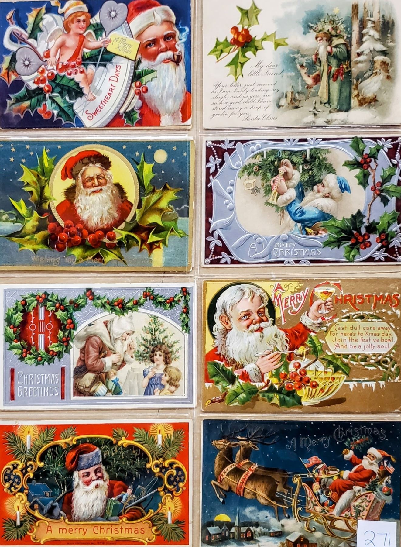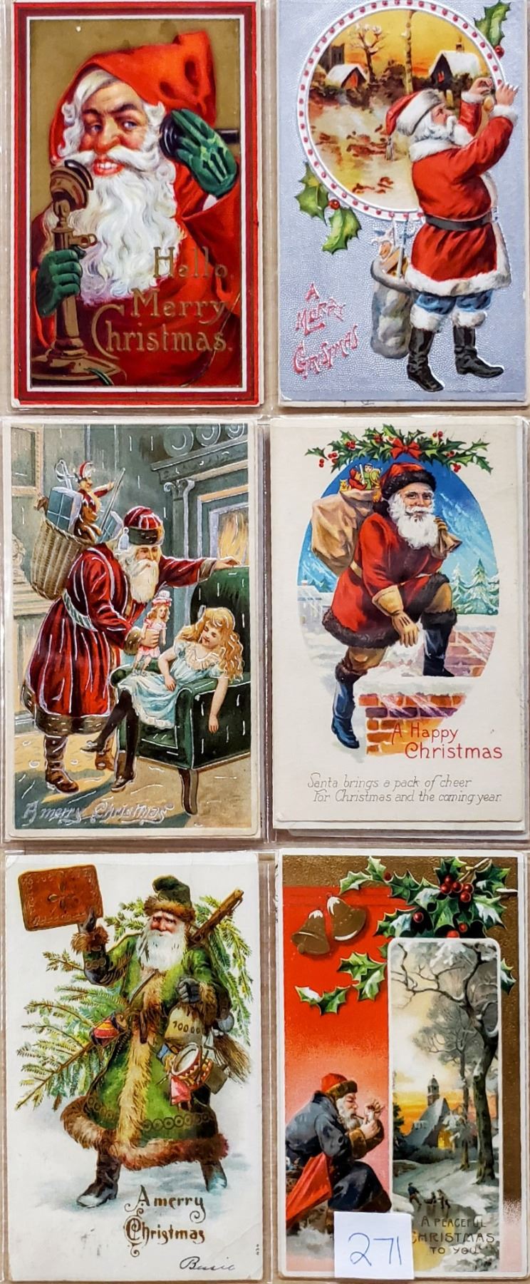 Over 40 Santa postcards. Different color robes. A couple silks.