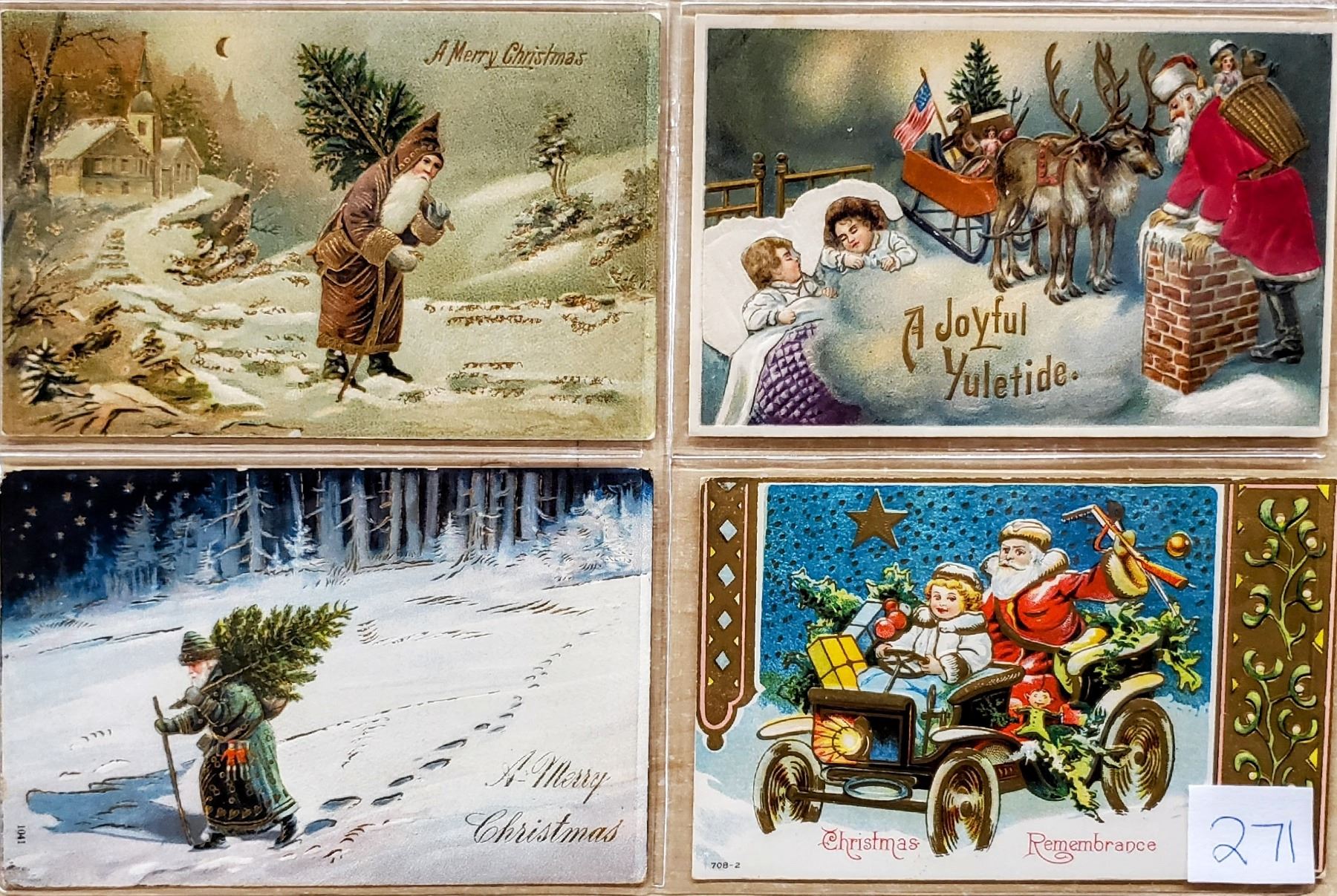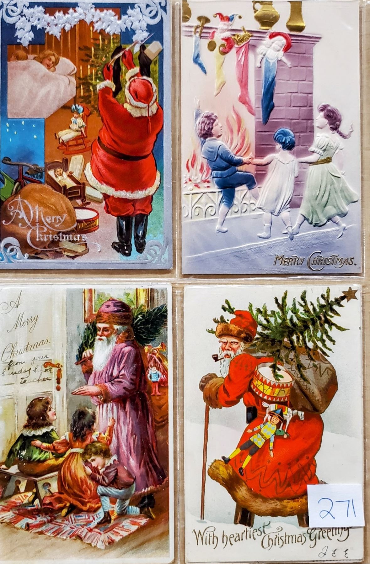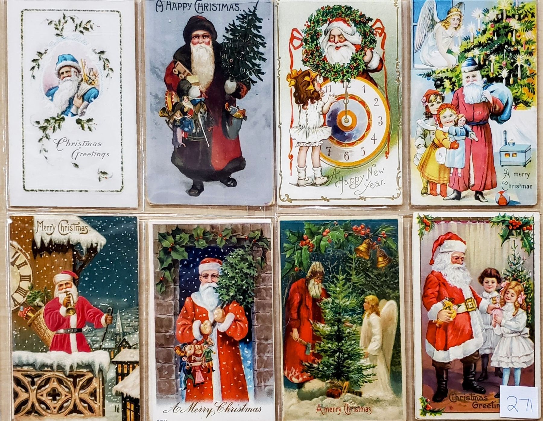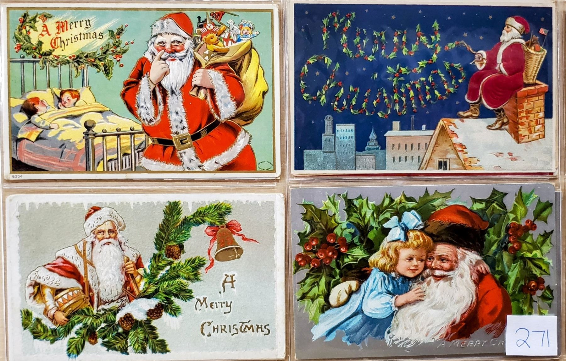Over 40 Santa postcards. Different color robes. A couple silks.