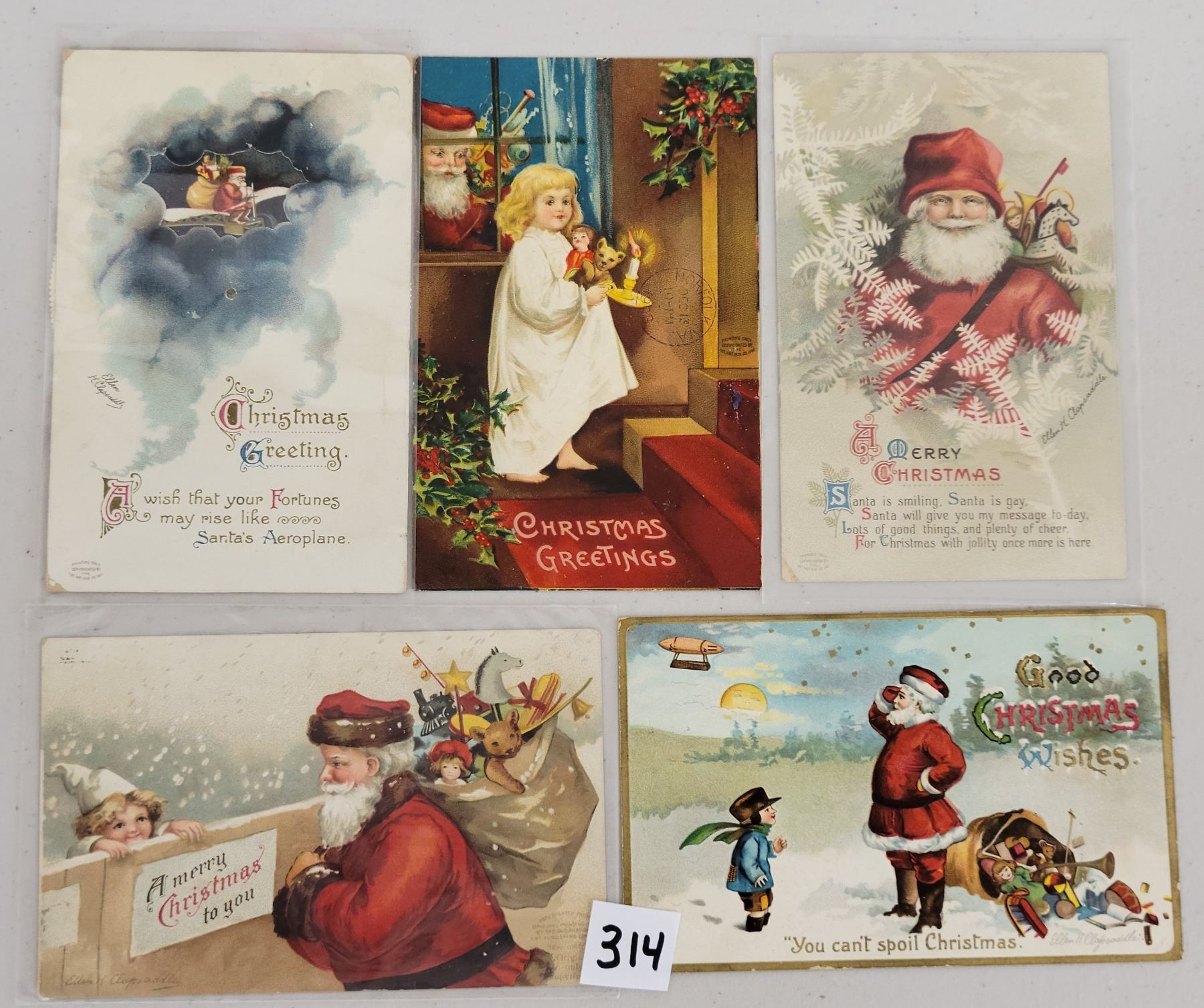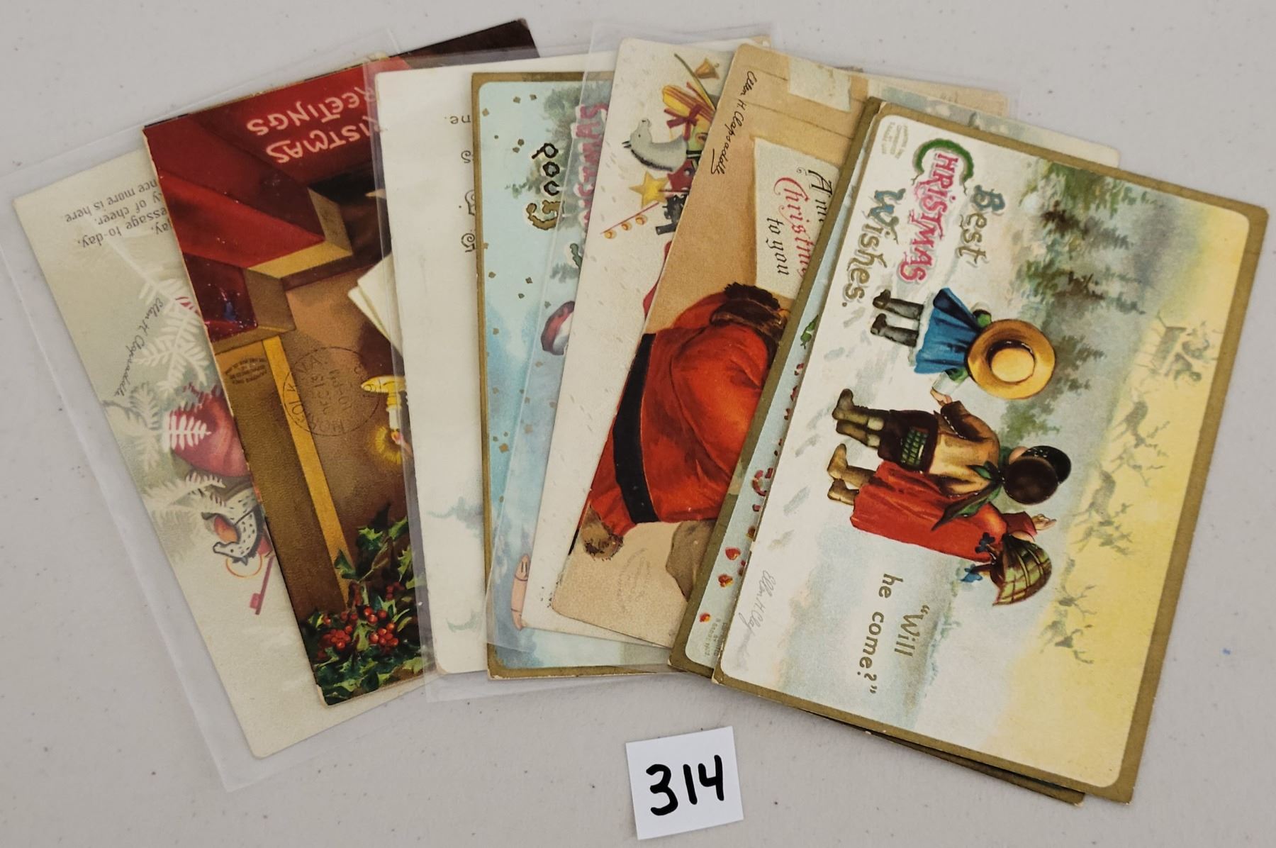 8 Clapsaddle Santa postcards. 1 Mechanical.