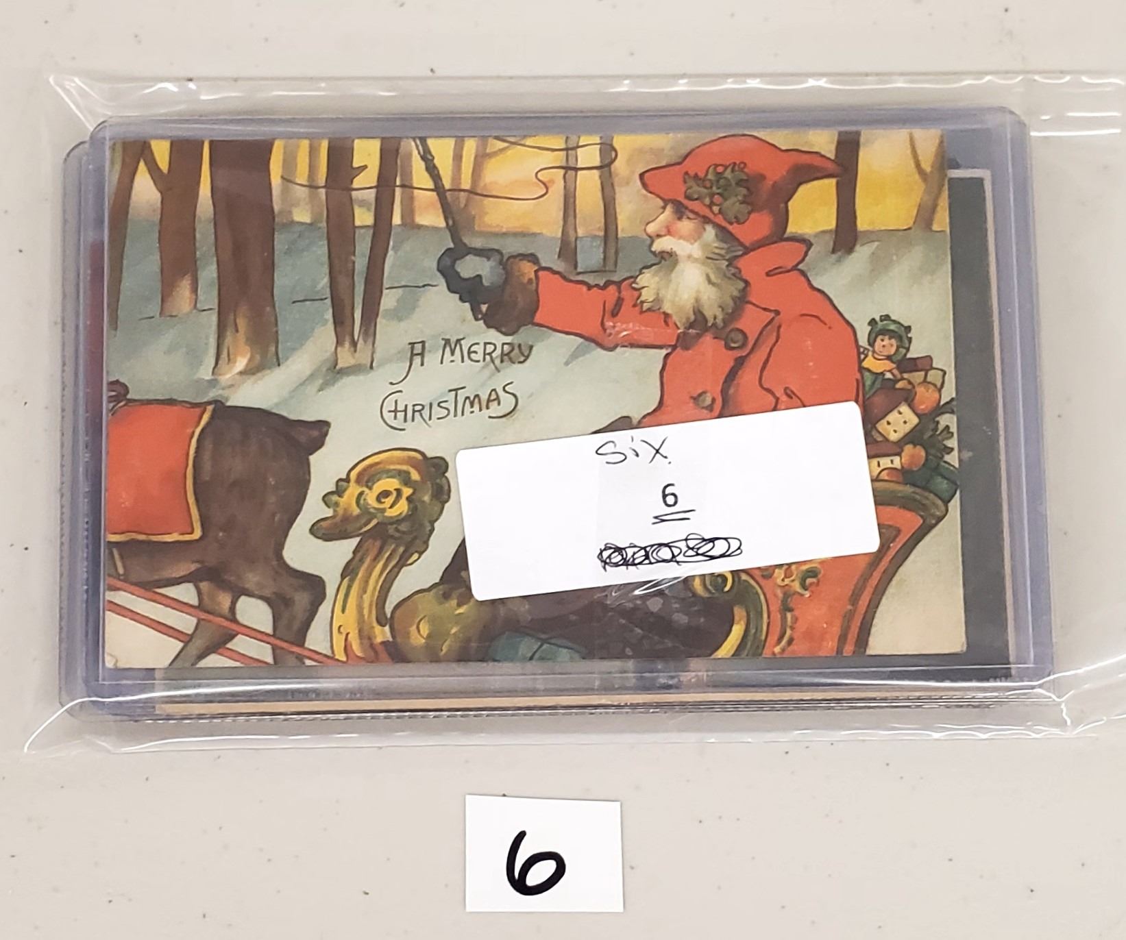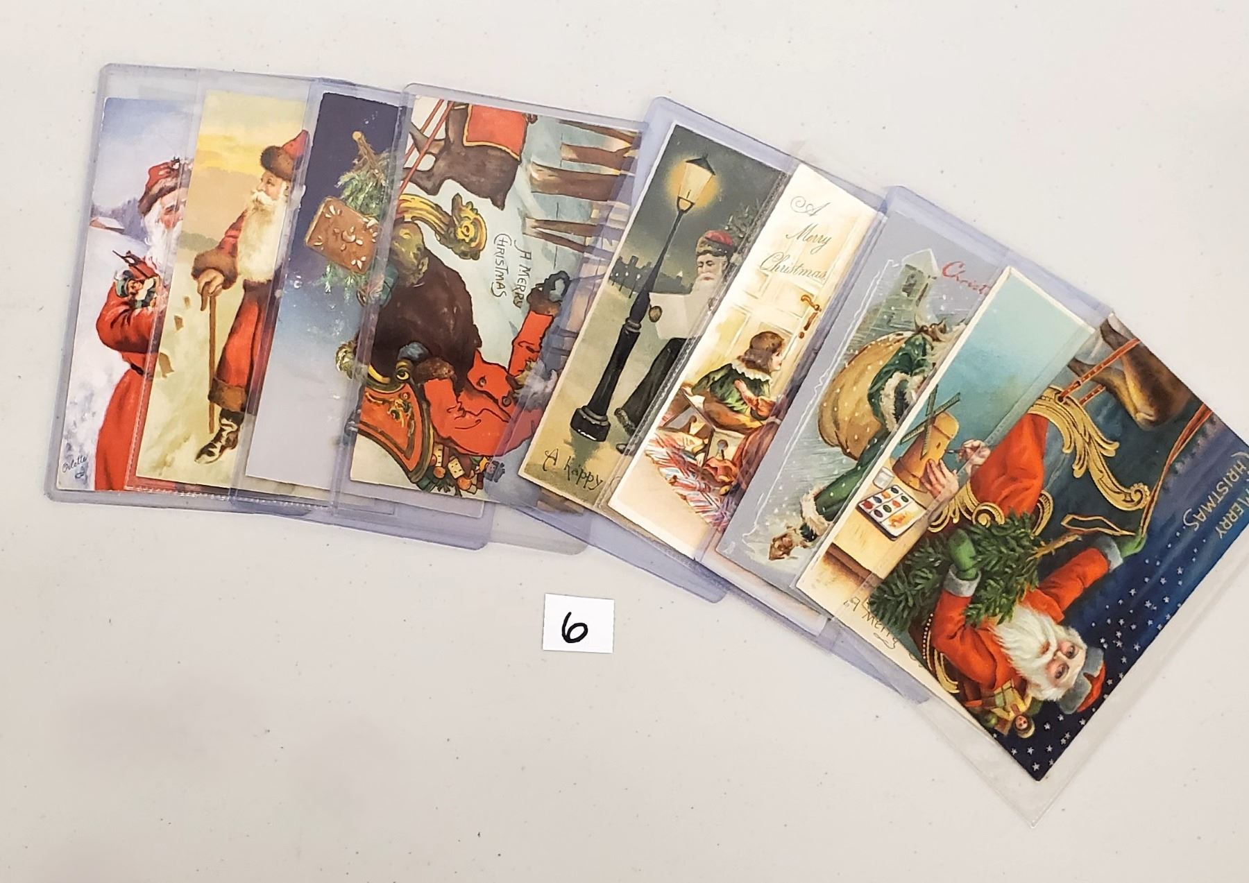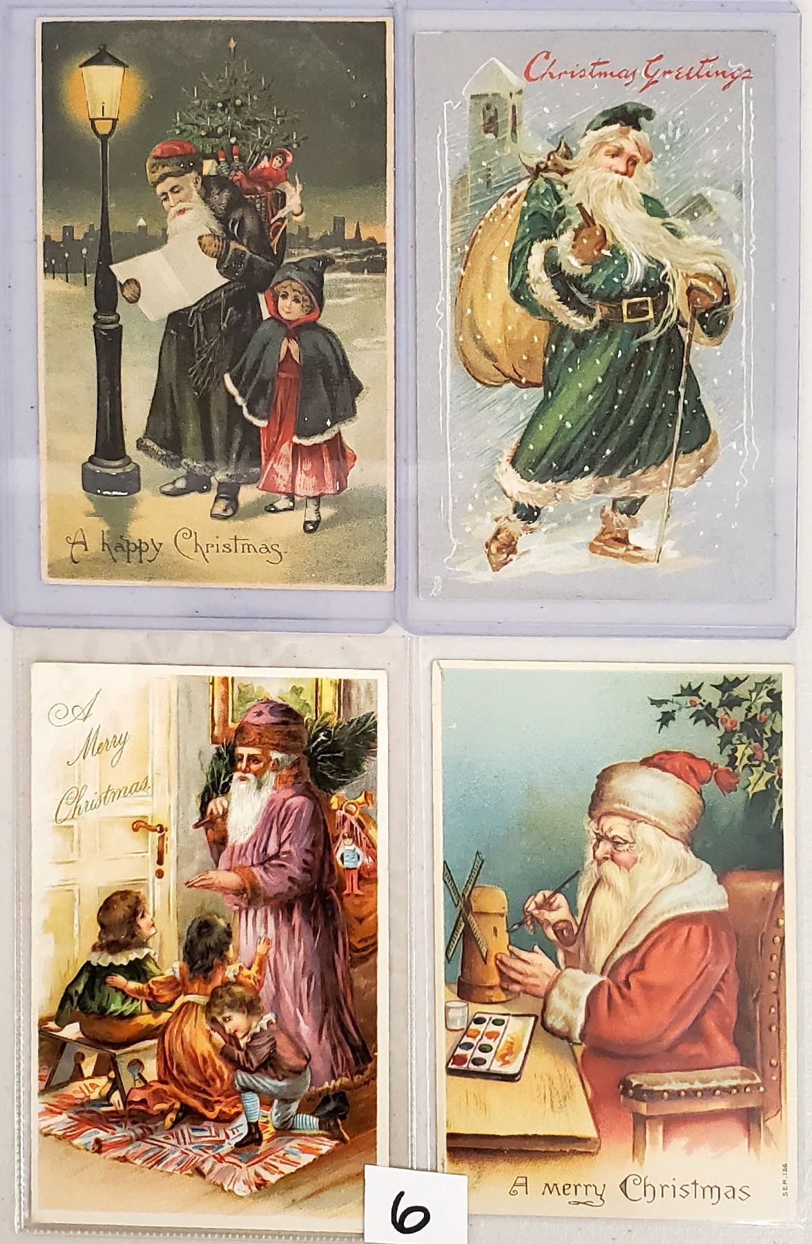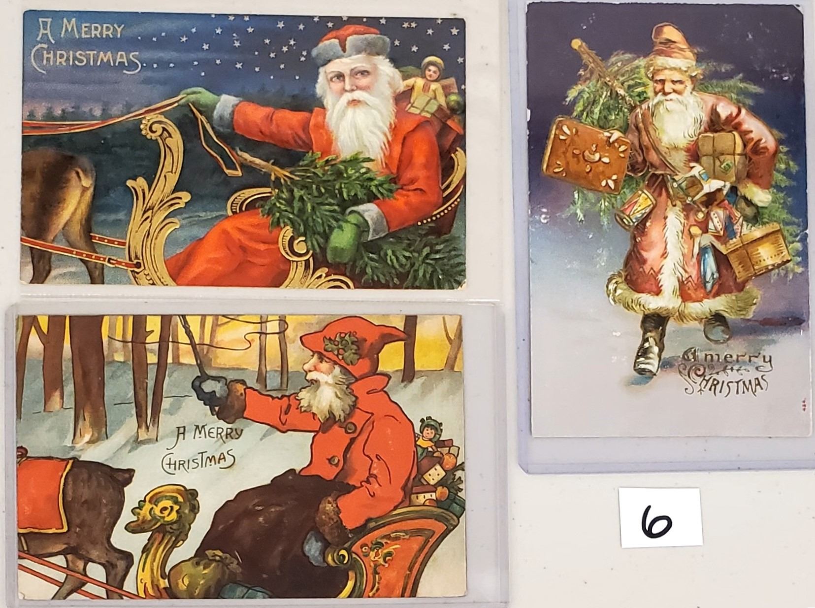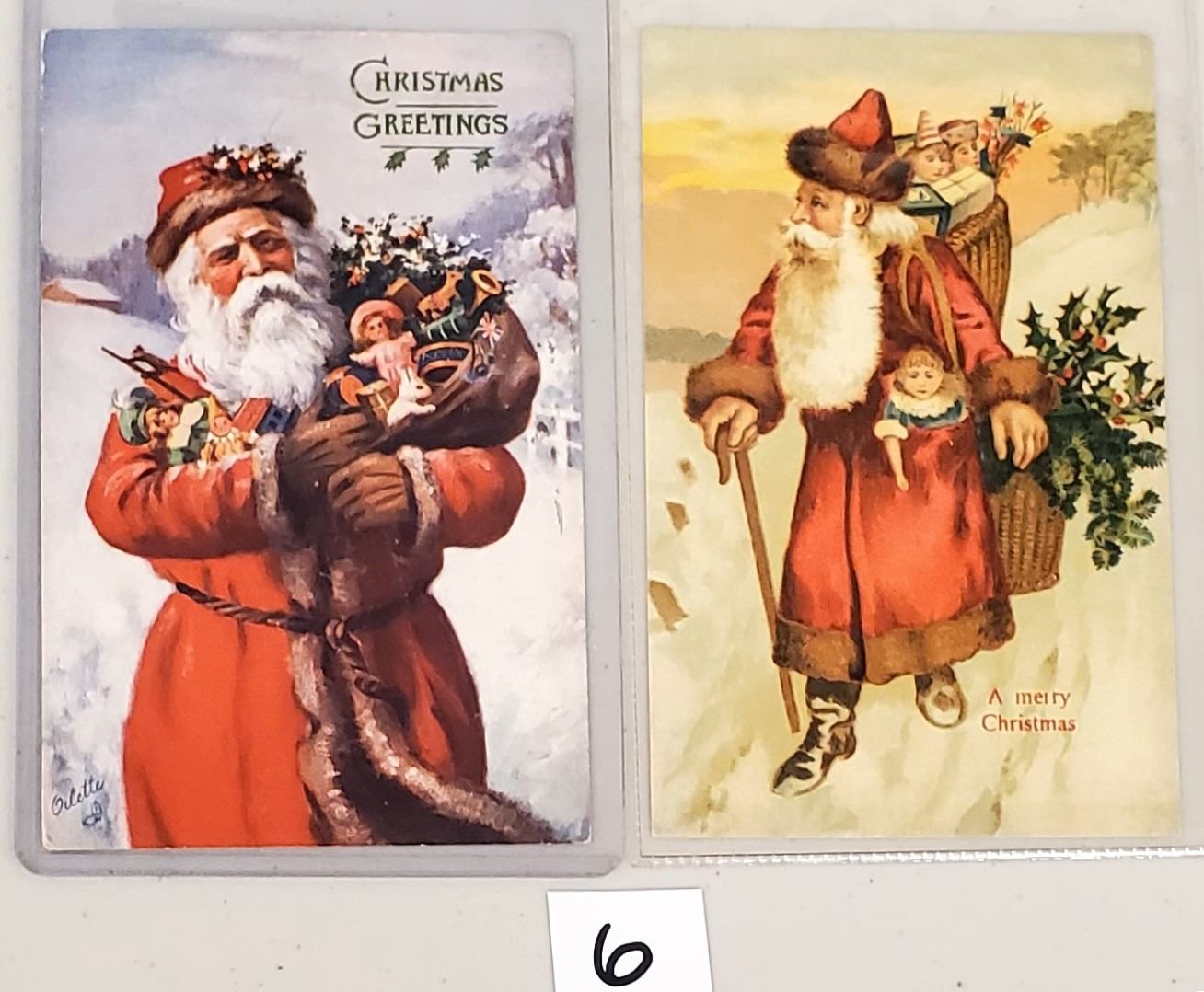 9 Santa postcards. Tucks, multi colored robes, etc.