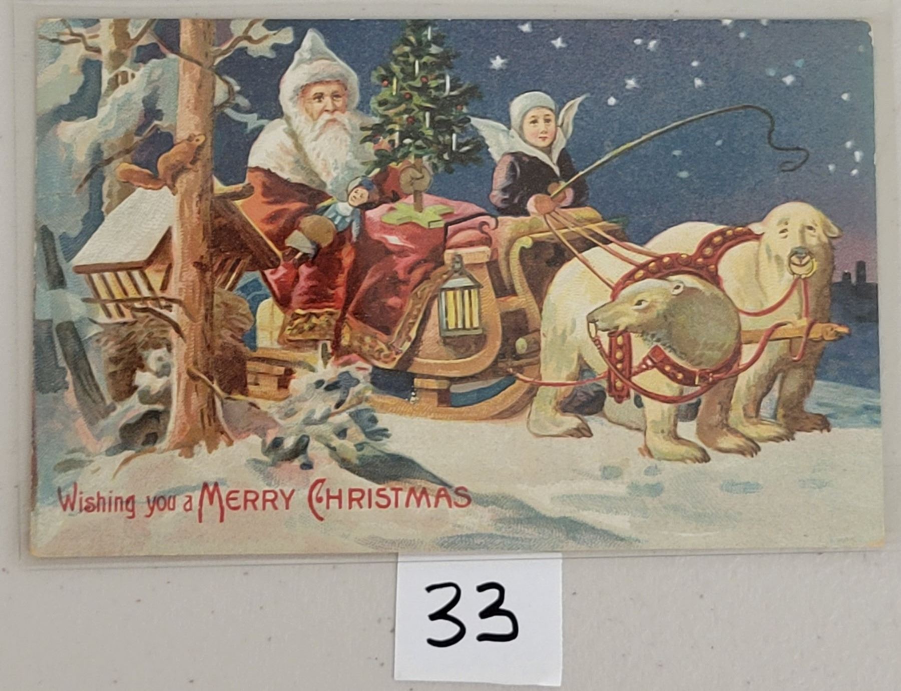 Santa Claus With Polar Bear Sled Christmas Postcard