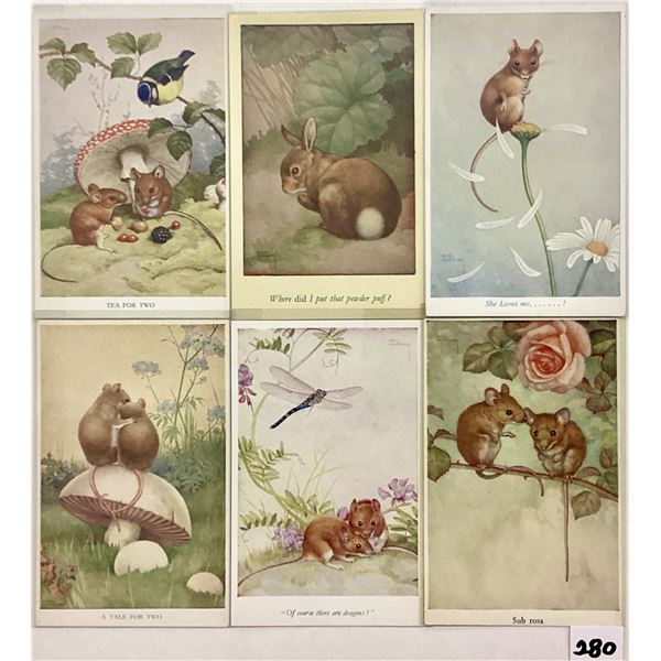 Medici Society - Personified Animals Mice by Noel Hopkins 6 Postcards