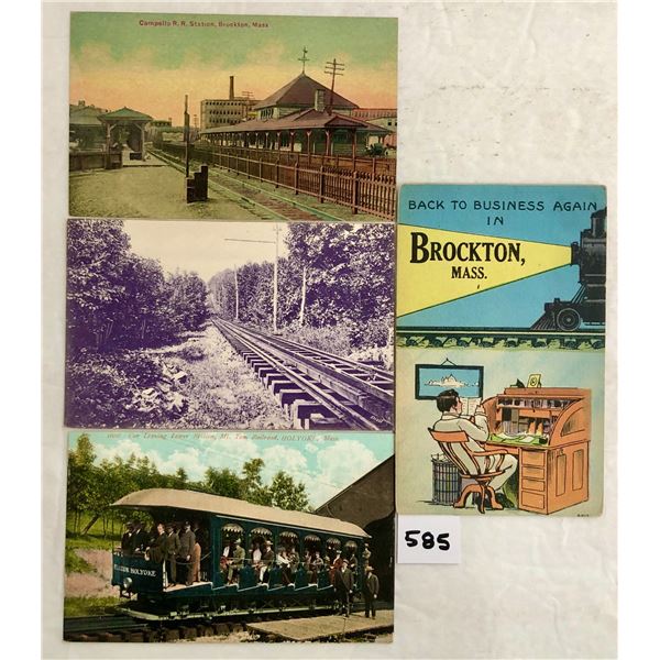 Over 100 MA train postcards. Mostly pre linen. Some duplication.