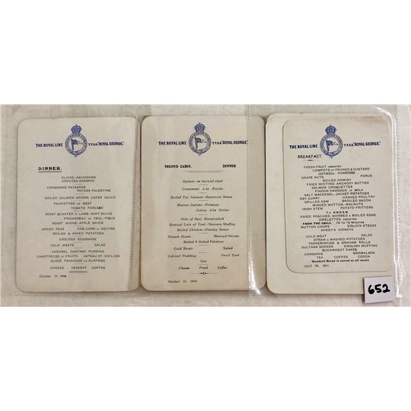 Ephemera- The Royal Line TTSS "Royal George" Menus 22652 - Ephemera- The Royal Line TTSS "Royal George" Menus 22