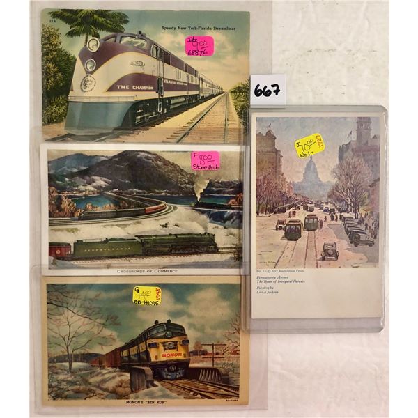 Approx. 225 train & related postcards. Early to standard size chrome. Mostly pre chrome.