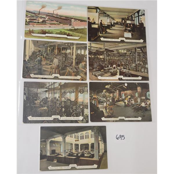 7 early interior Leipzig printing factory postcards.