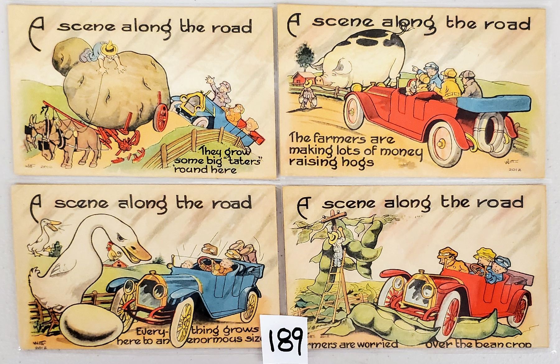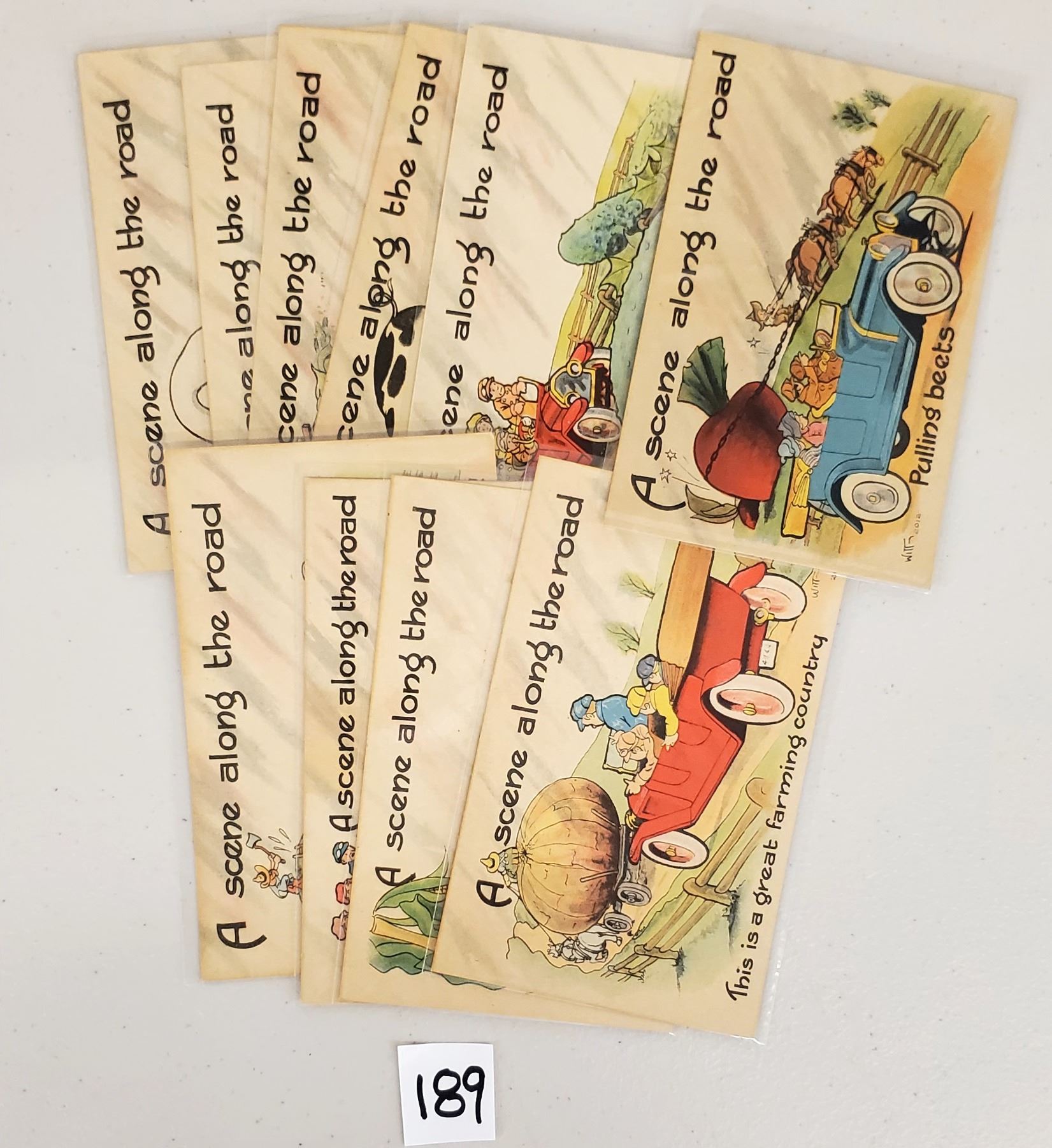 Set of 10 early Art Witt Auto exaggeration postcards.