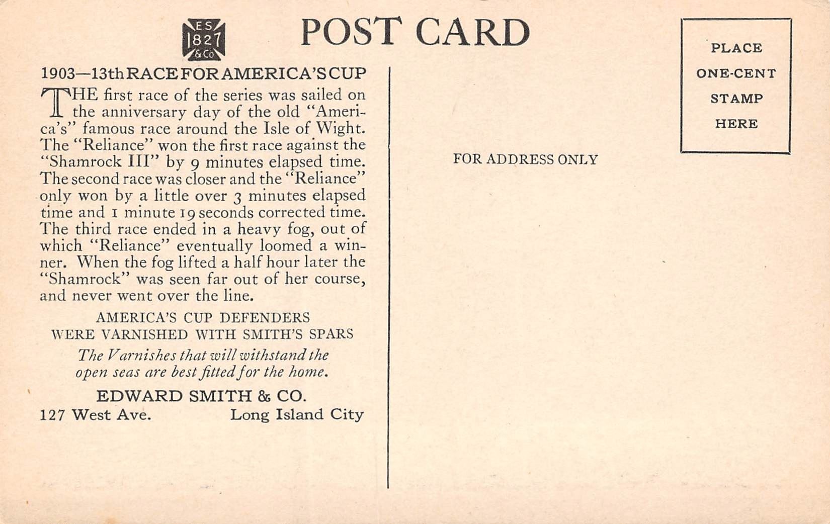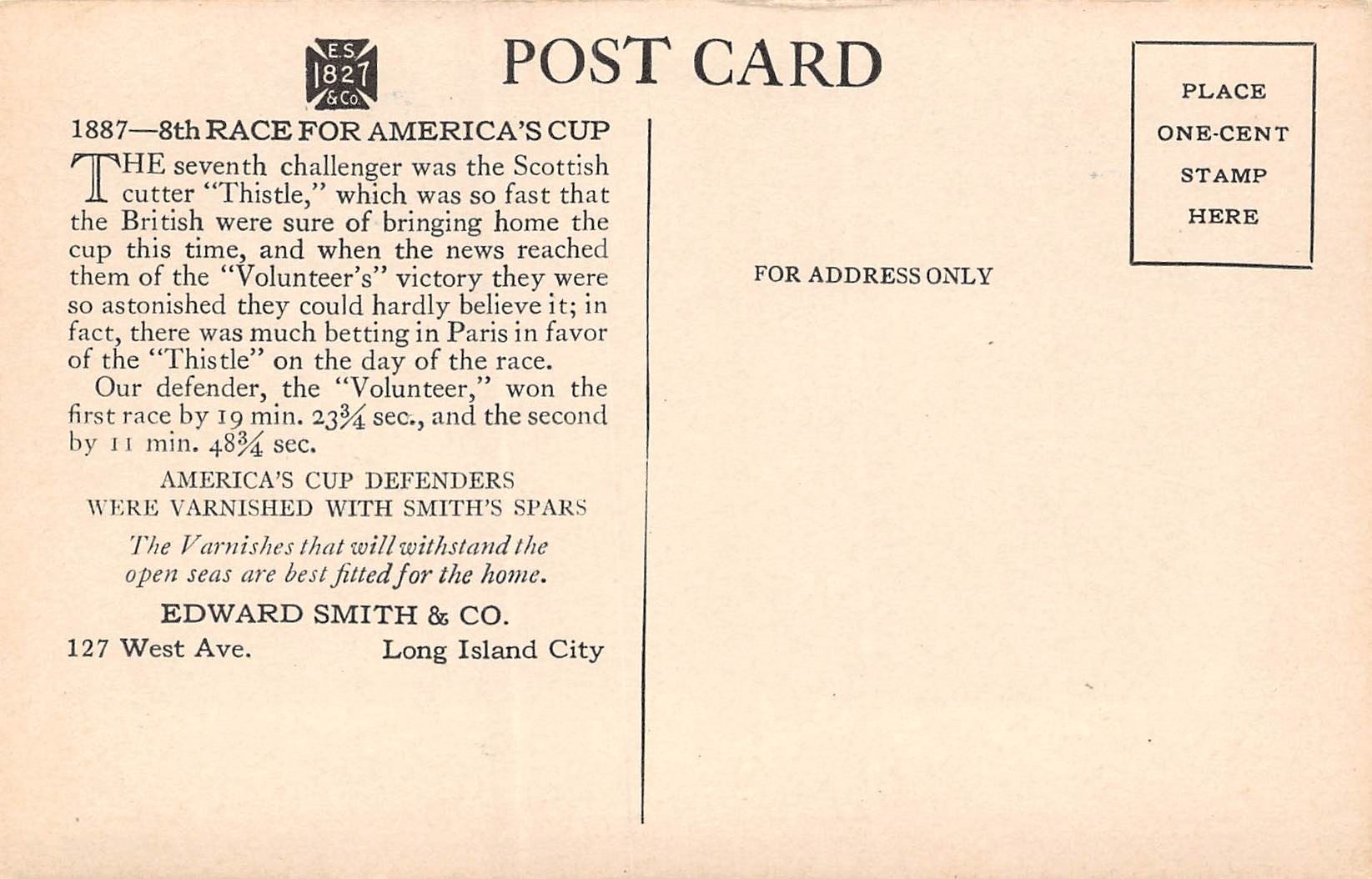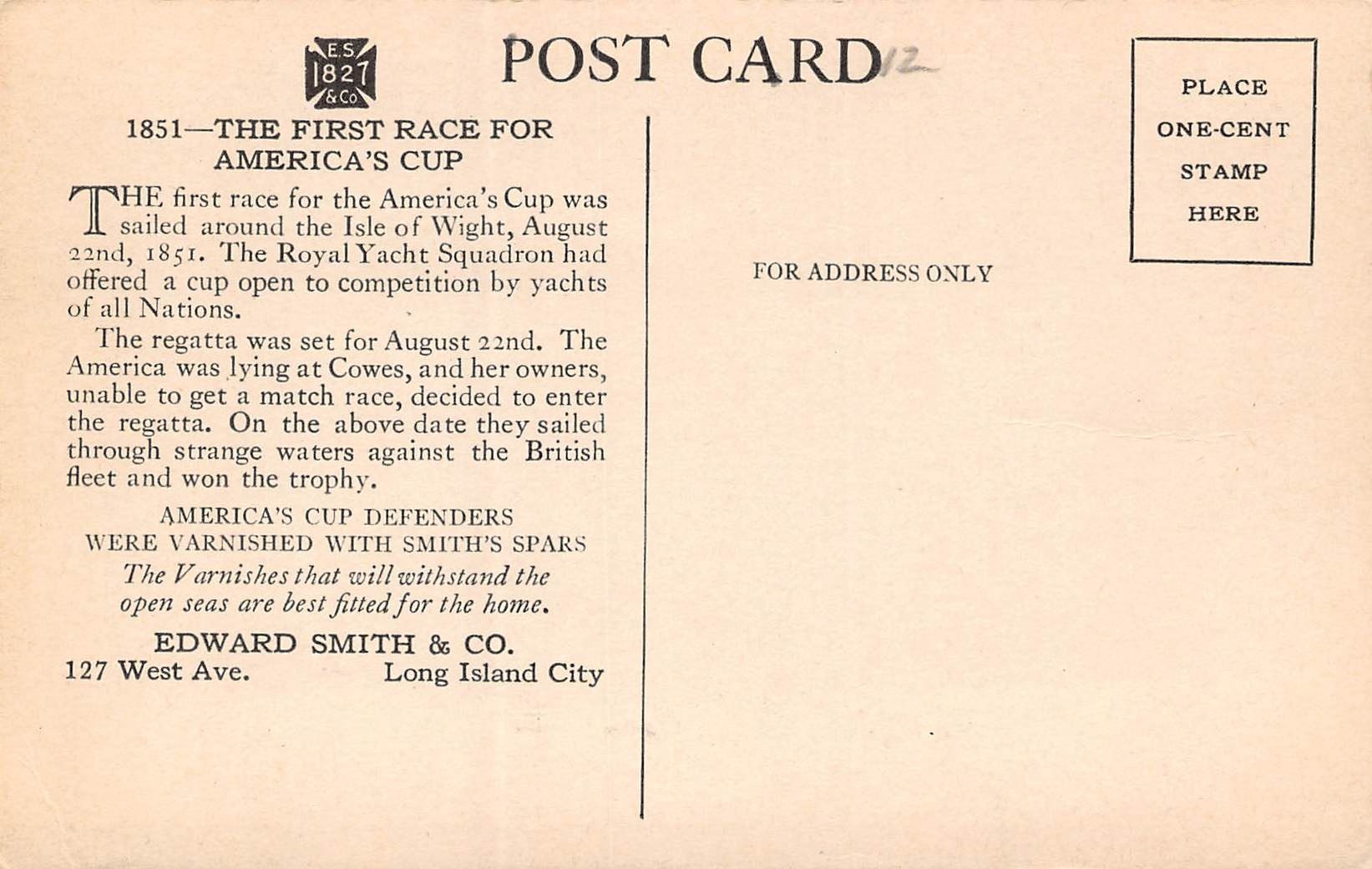 Set of 12 America's Cup Sailboat Race Edward Smith & Co. Long Island City Advertising Postcards