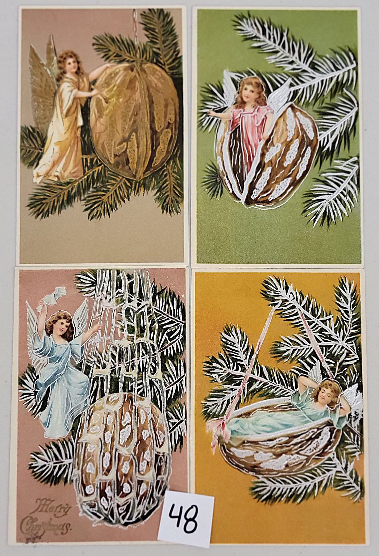 Set of 4 Angels & Walnut Holiday Greeting Postcards
