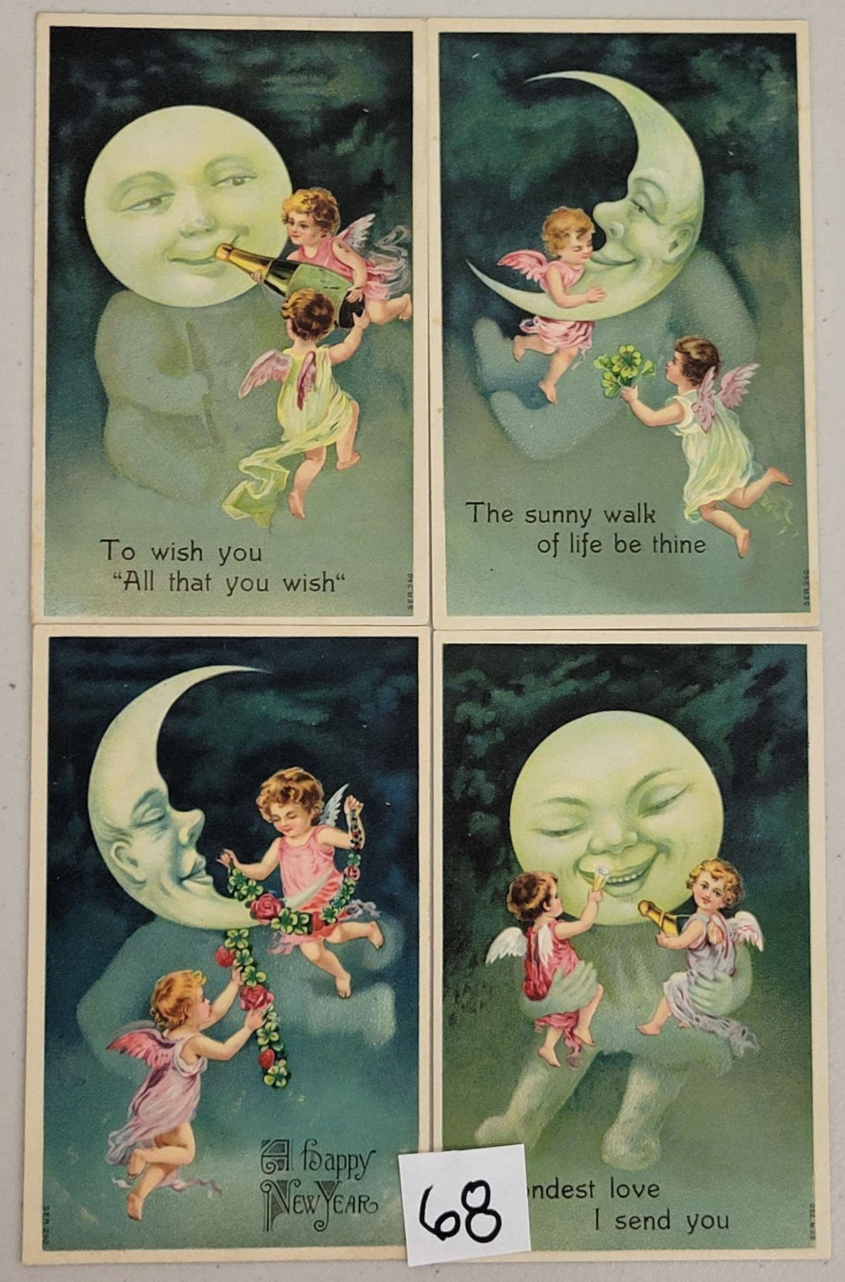 Set of 4 Angels with the Moon Holiday Greeting Postcards