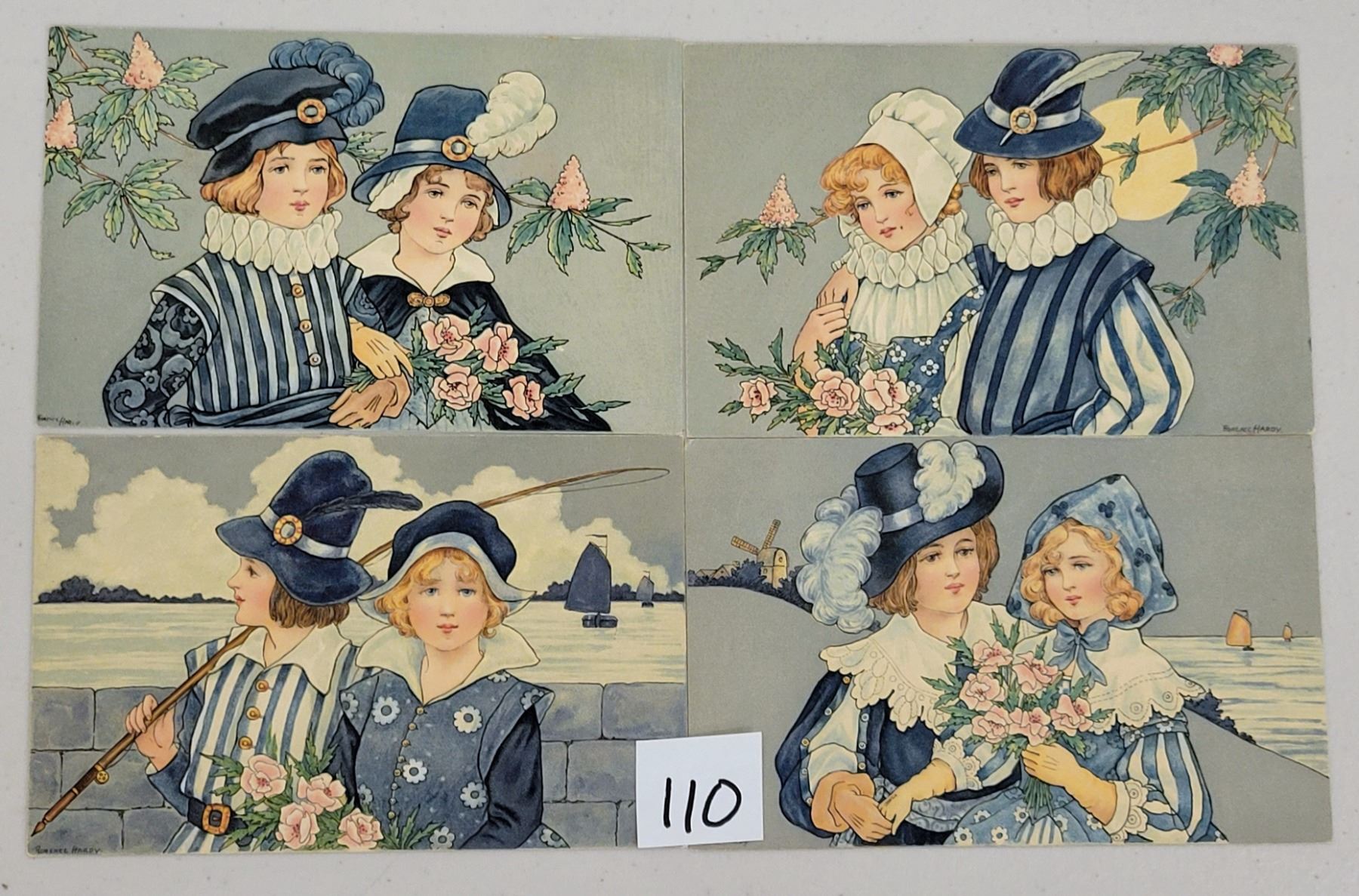 Set of 4 M.M. Vienne No. 382 Children Postcards