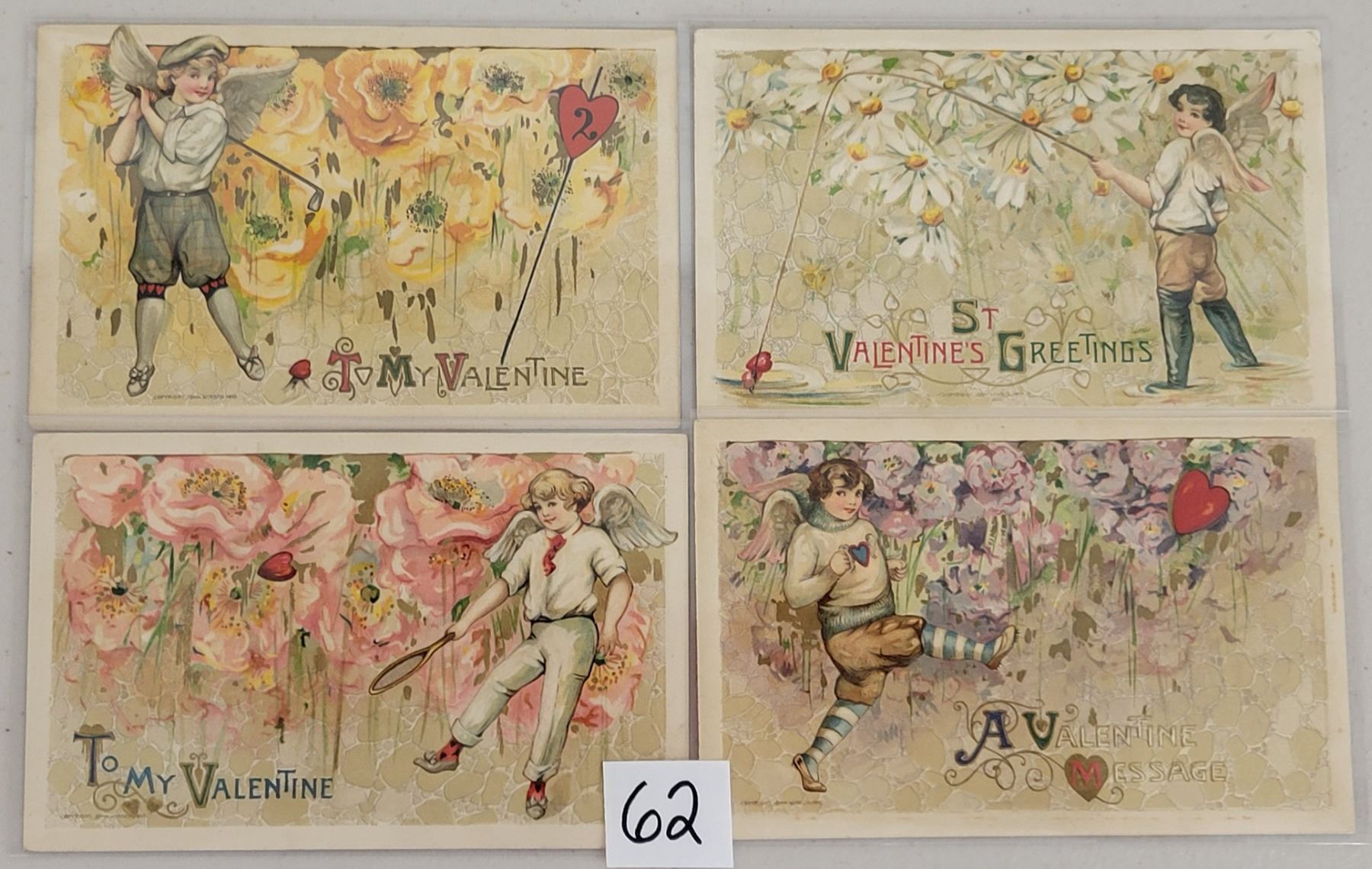 Set of 4 Winsch Cherub Playing Sports Valentine Holiday Postcards