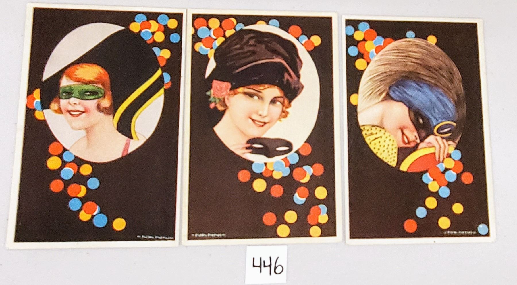 Set of 6 Nanni Art Deco Pretty Ladies in Hats with Masks Postcards