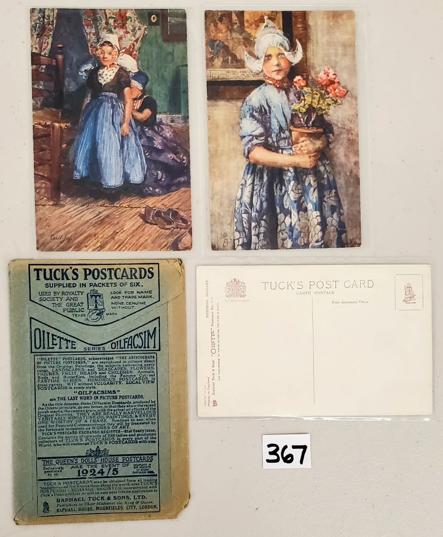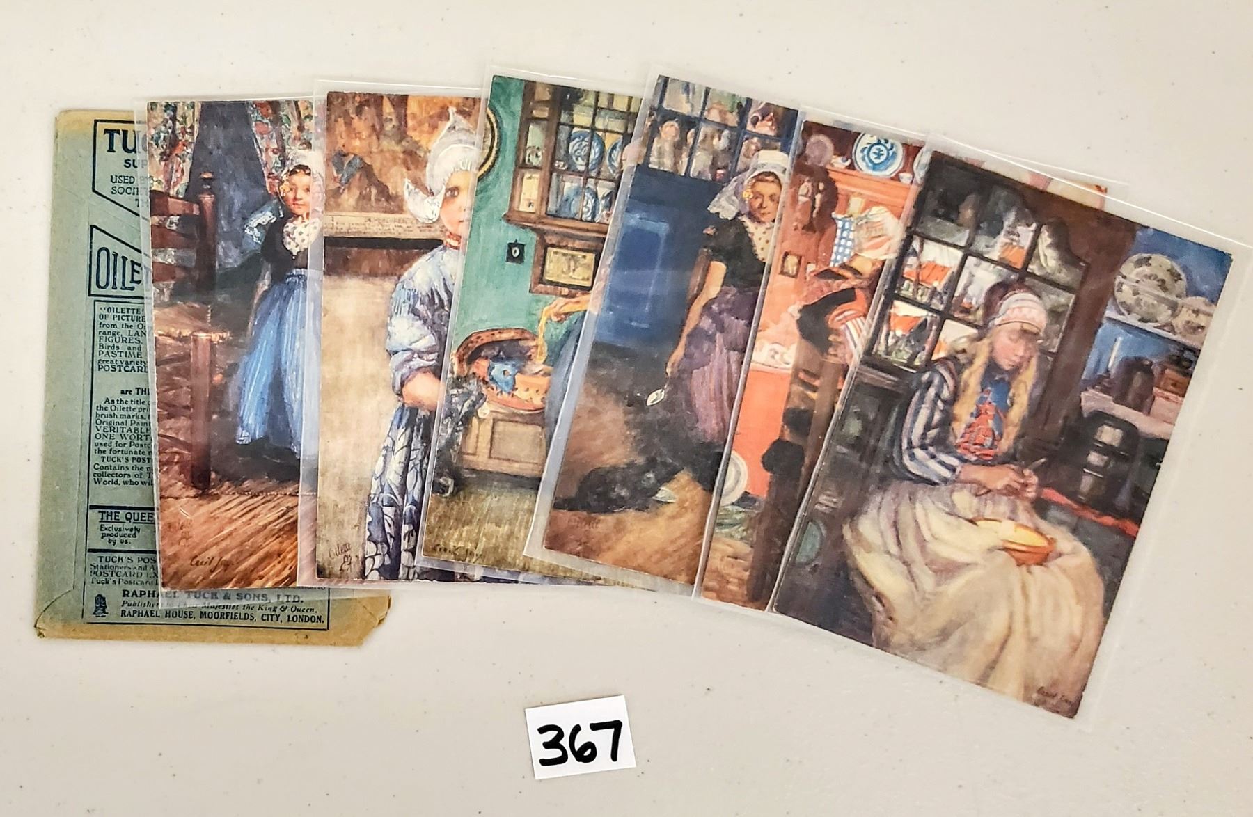 Set of 6 Tuck Pictorial Holland Lady Postcards & Wrapper.