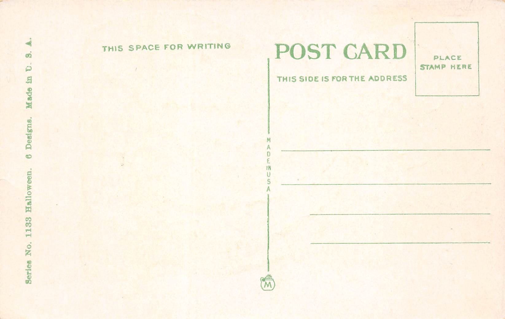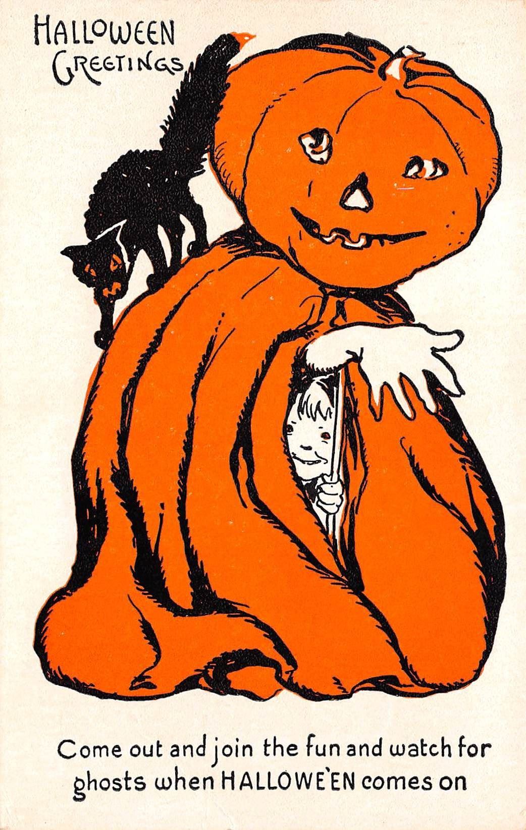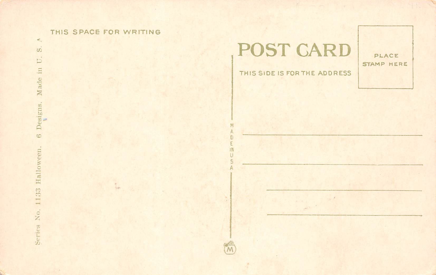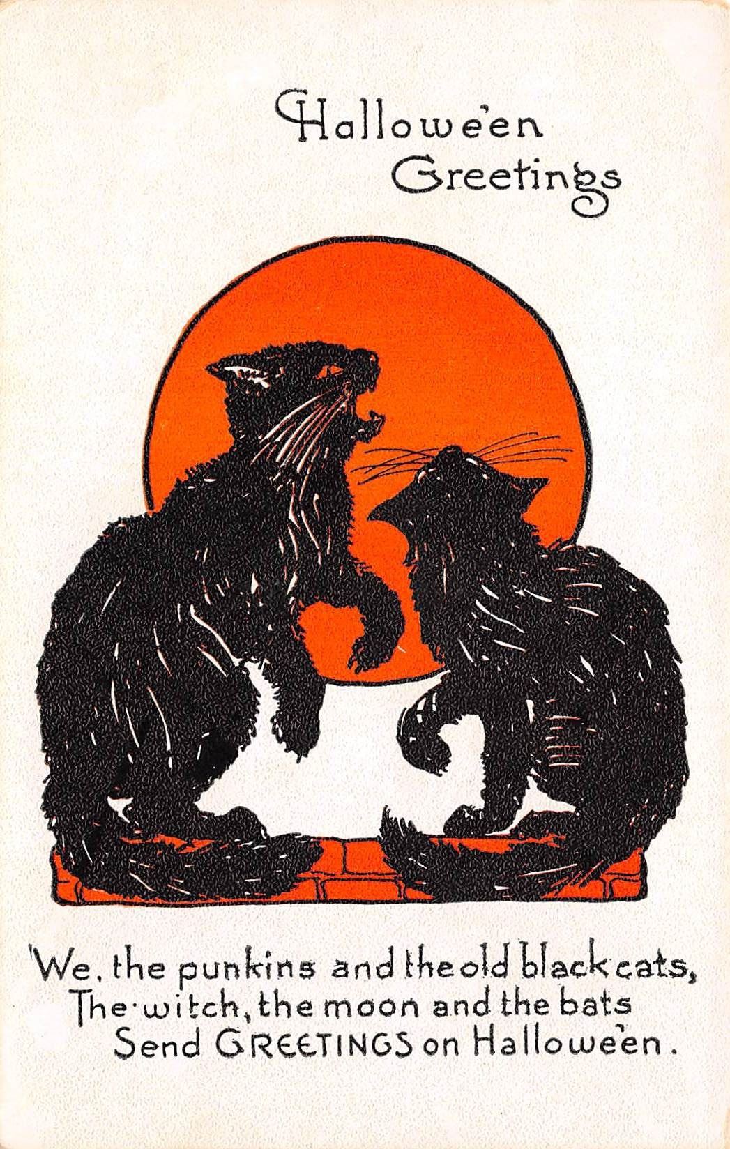 Early. White, black and orange coloring. Witches, owls, cats, etc.