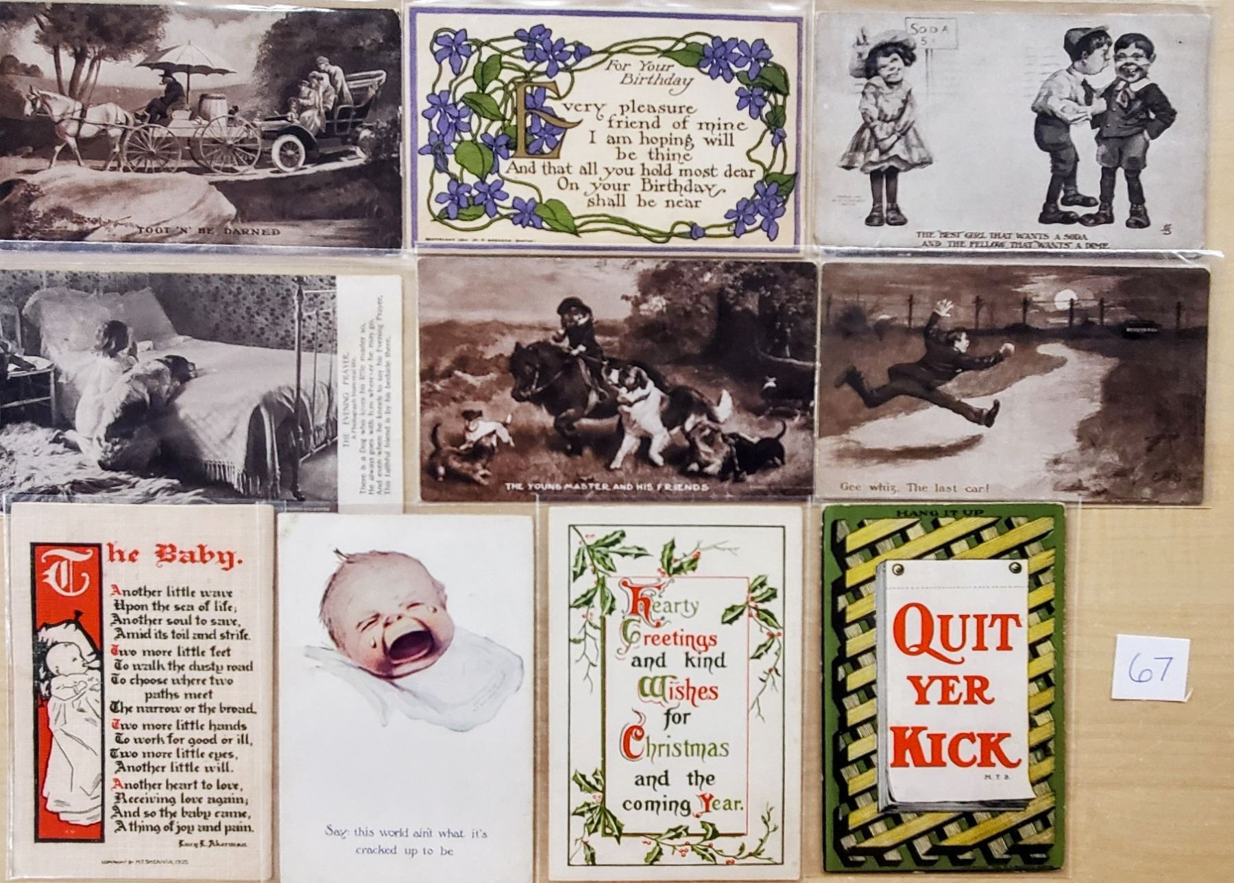 26 postcards by Sheahan Publishing. Children, sayings, comics.