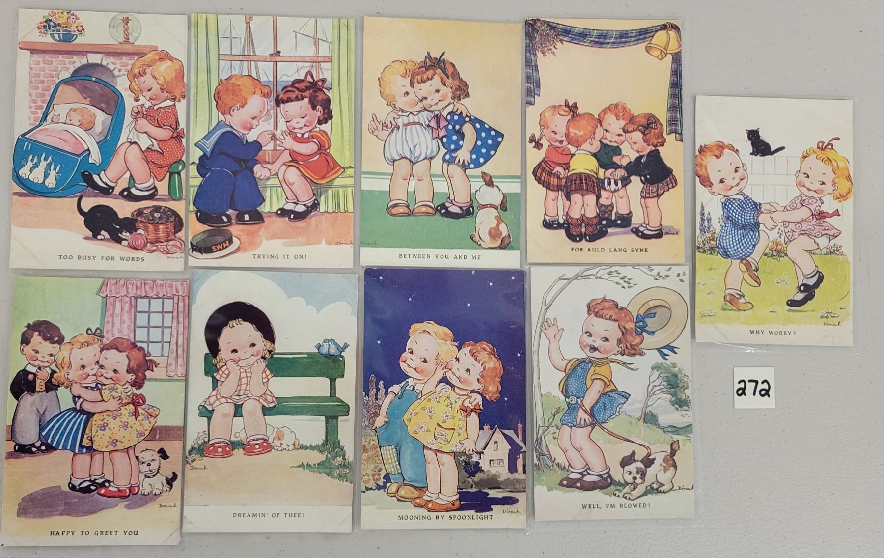 23 signed children postcards. Curtis, Dinad, Parkinson.