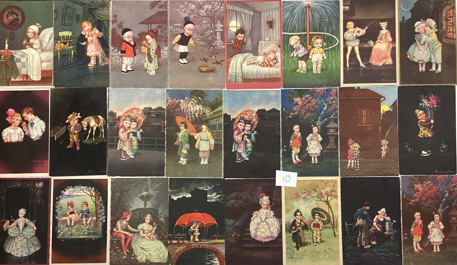 60 Columbo signed artist postcards. Children, ladies, etc.