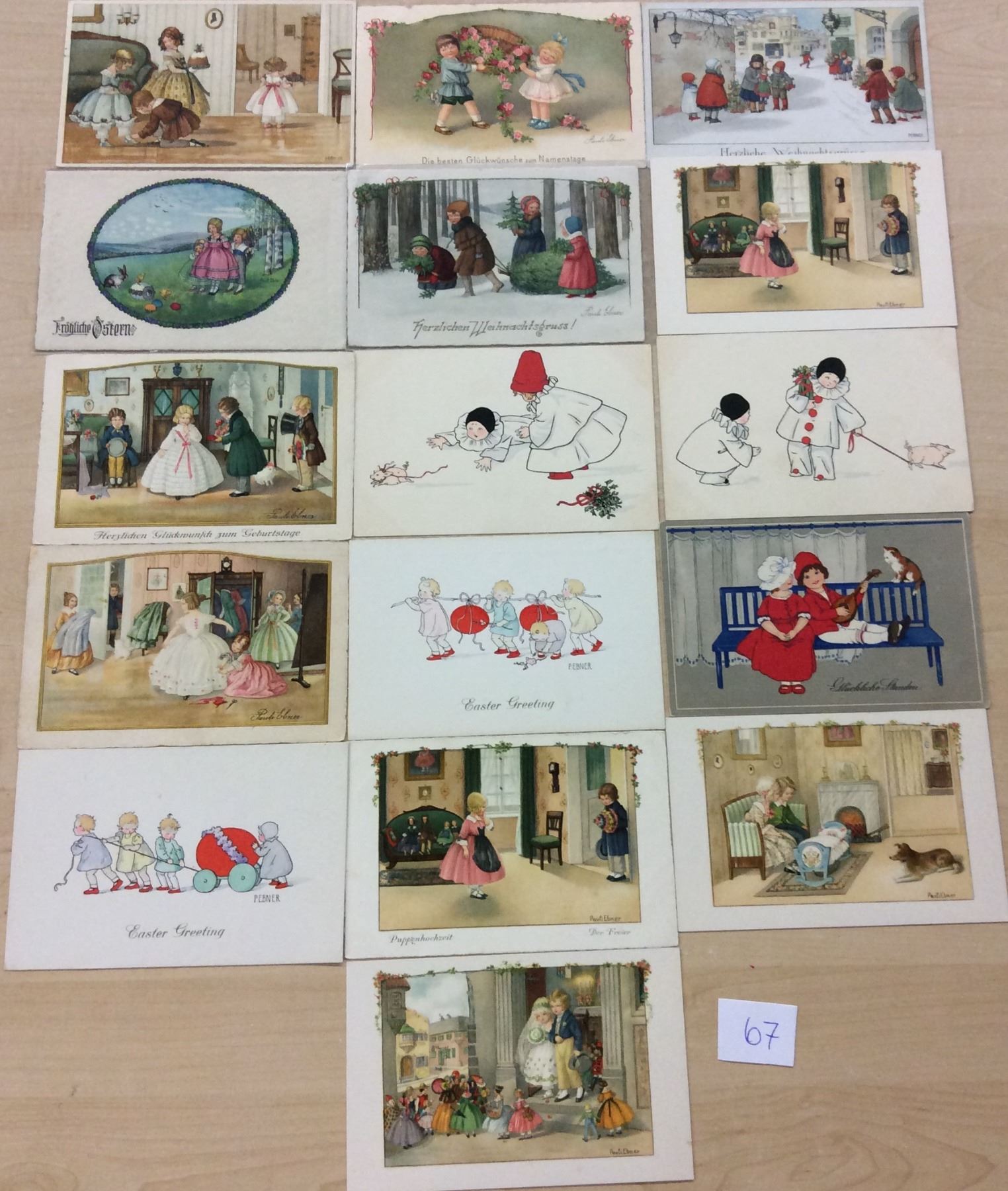 Signed Artist Pauli Ebner Children & Holiday Greeting Postcards 35