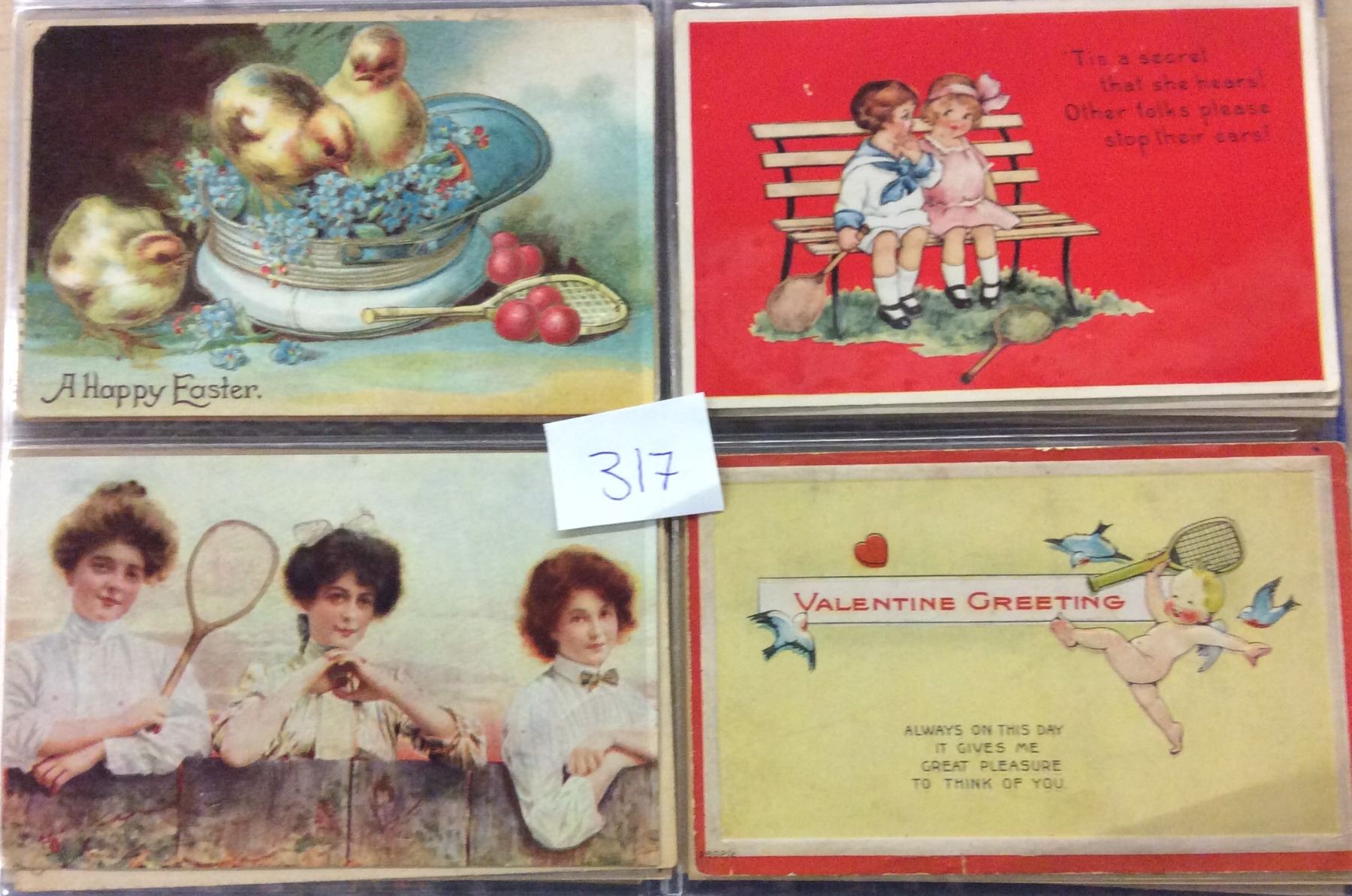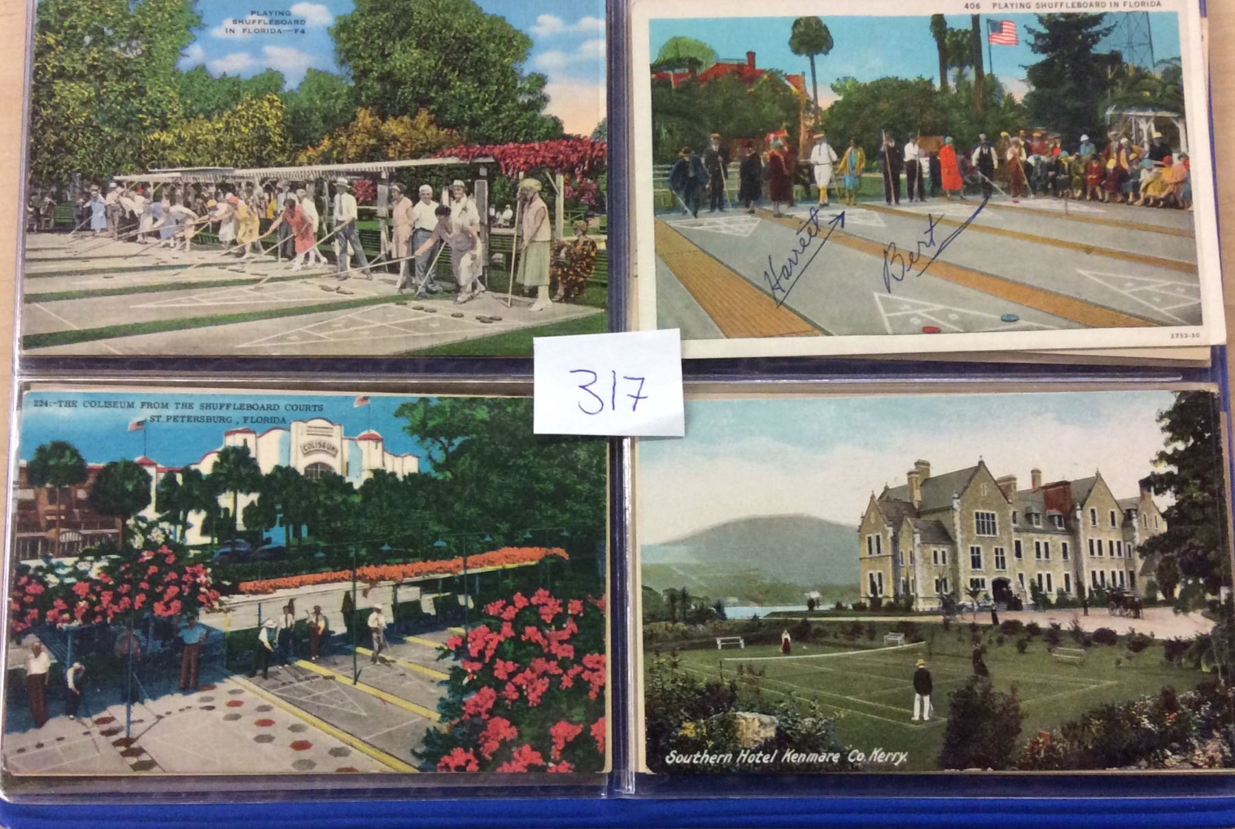 Approx. 150 sport postcards. Early to standard size chrome. Tennis, shuffleboard, arenas, stadiums, polo, bowling and more.